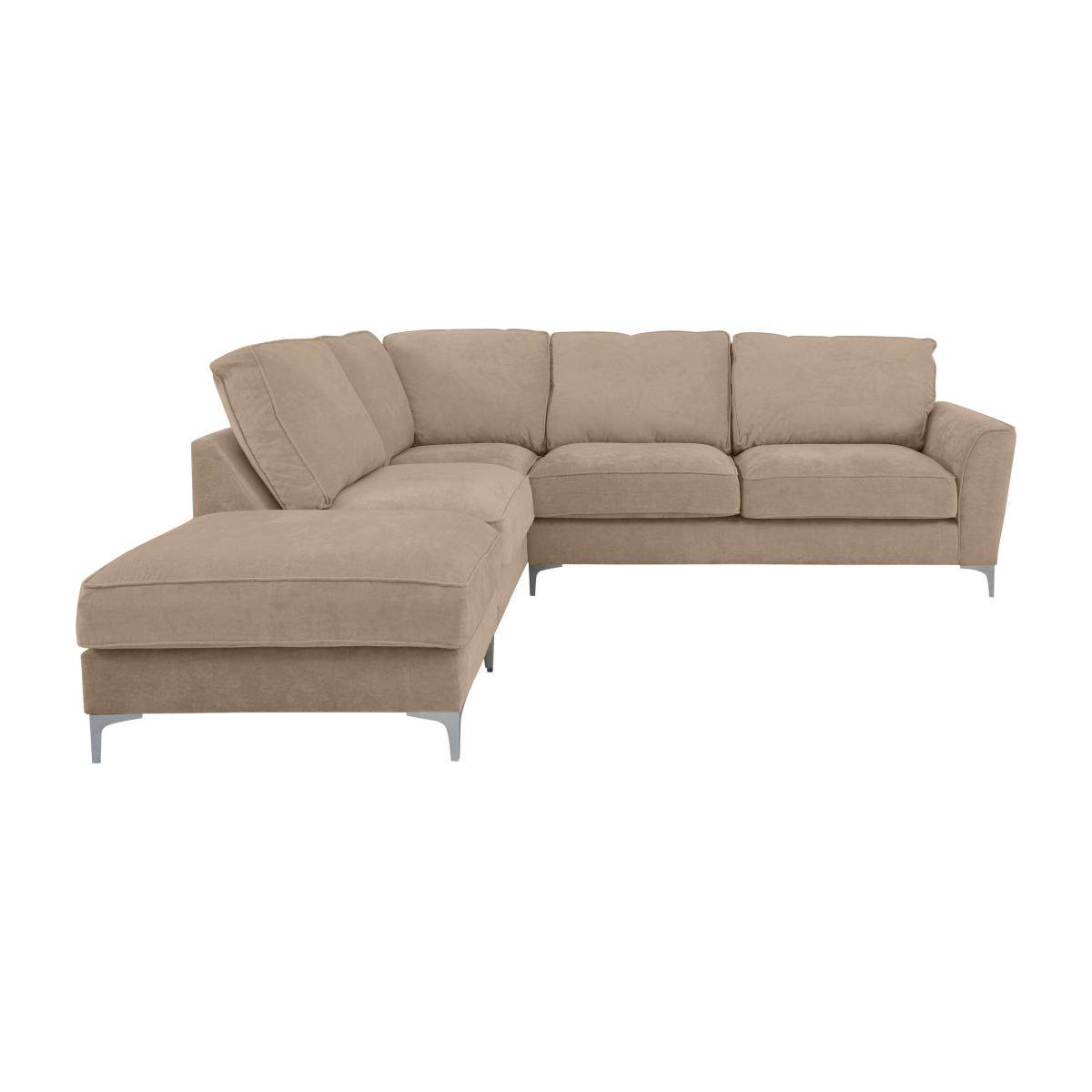 Legend Classic Back Fabric Left Hand Facing Corner Sofa with Chrome Feet - Kingston Mushroom