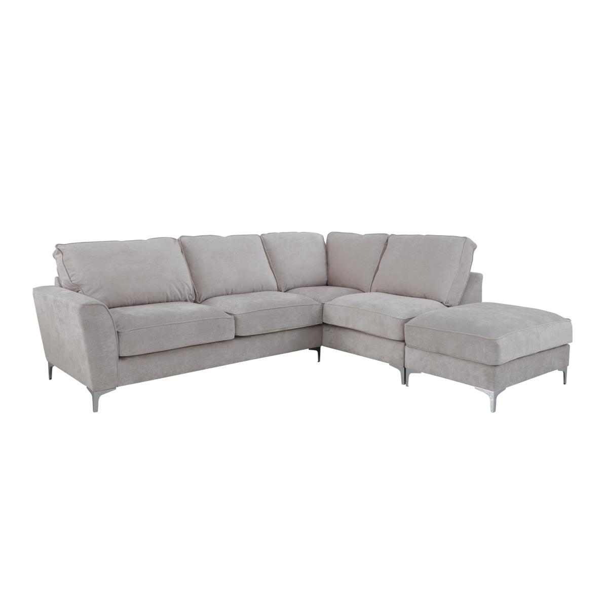 Fresh modern style, legendary comfort – that’s the Legend collection. The sofas, chairs and footstools have soft modern lines and polished chrome legs, and are upholstered in family friendly flat weave fabric in a choice of beautiful neutrals and bolds. Choose relaxed pillow backs or clean lined classic backs, then complete the look with some reversible accent scatters in a choice of vibrant contemporary patterns, available to buy separately. The legendary comfort comes from the sprung seats and backs with foam flex and supersoft foam topper seat cushions and luxury blown fibre back cushions. Made exclusively for Furniture Village. The wonderfully roomy Legend classic back fabric corner sofa comes with a large footstool which you can use as a chaise end if you want to really stretch out. Why you'll love it Roomy classic back fabric corner sofa is just made for stylish relaxing. Contemporary elegance, indulgent comfort. Amazing FoamFlex™ seat cushions with super-soft foam tops. Comes with a large footstool so you can create a luxurious chaise end. In a huge choice of fashionable colours to match your decor. Soft yet hardwearing fabrics include hopsack, chenille and velvet. Shiny chrome-finished legs – or opt for light wood or dark wood. Complete the look with Legend scatter cushions, available separately. A Furniture Village exclusive. This classic back fabric corner sofa is part of the Legend range. What you need to know Medium comfort level. Sprung seat and back. Seat cushions: FoamFlex™ topped with soft foam. Back cushions: blown fibre. Some fabrics can show wear on areas of more use or in direct sunlight. Plump and straighten seat and back cushions daily. Rotate cushions regularly. Please read our upholstery care guide for more advice.