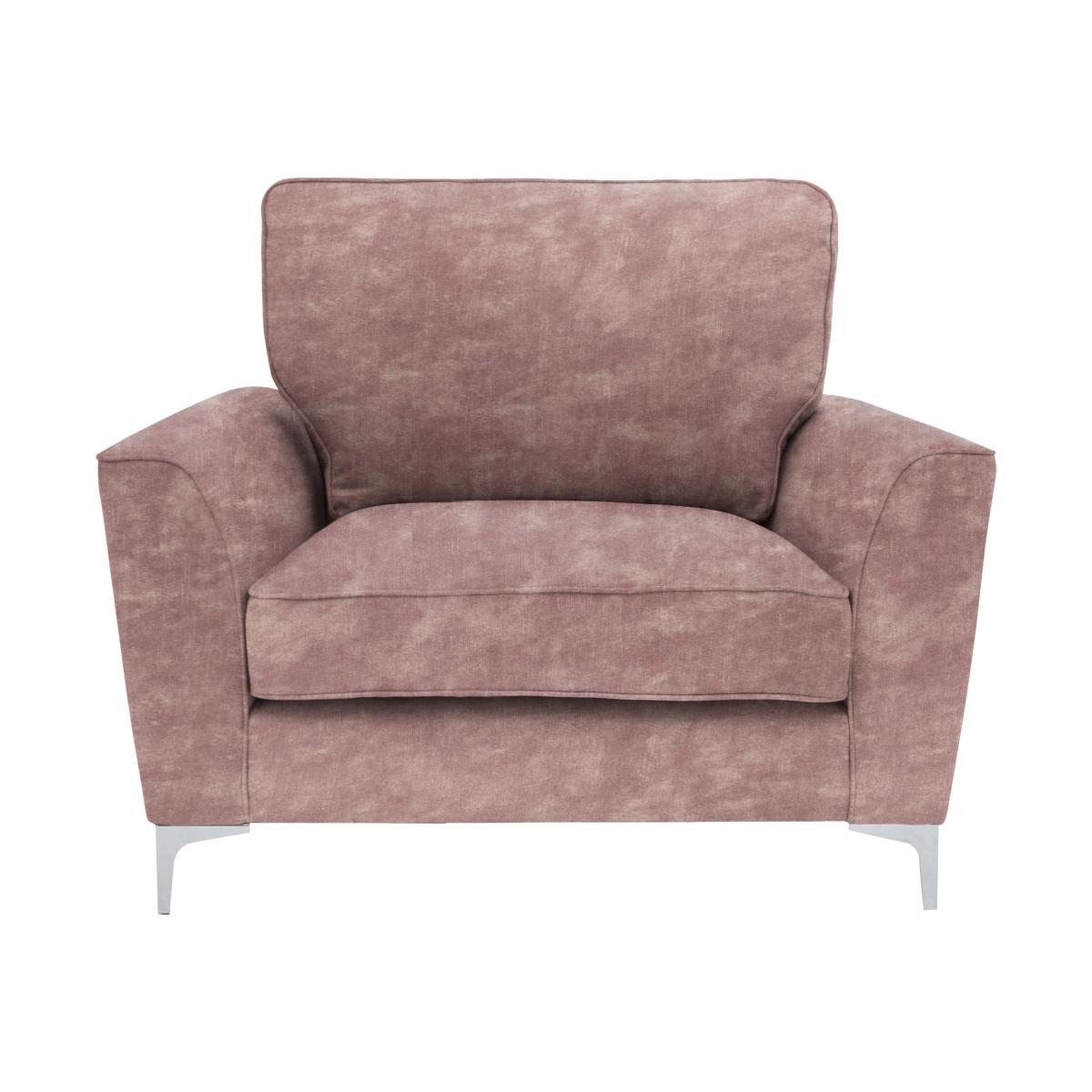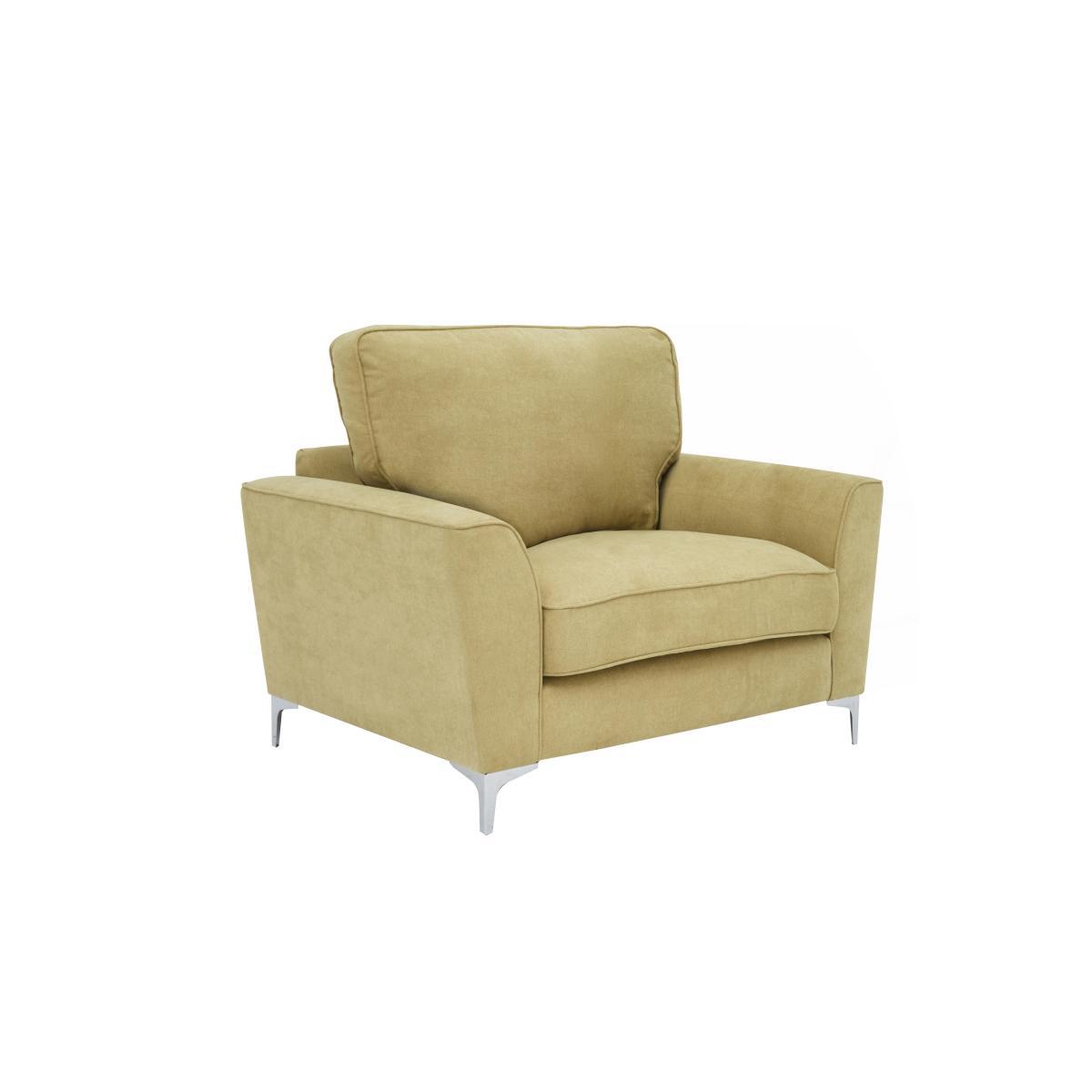 Fresh modern style, legendary comfort – that’s the Legend collection. The sofas, chairs and footstools have soft modern lines and polished chrome legs, and are upholstered in family friendly flat weave fabric in a choice of beautiful neutrals and bolds. Choose relaxed pillow backs or clean lined classic backs, then complete the look with some reversible accent scatters in a choice of vibrant contemporary patterns, available to buy separately. The legendary comfort comes from the sprung seats and backs with foam flex and supersoft foam topper seat cushions and luxury blown fibre back cushions. Made exclusively for Furniture Village. The Legend fabric armchair is elegant, modern and seriously comfortable. Surprisingly roomy, it has clean lines, gently curved arms and shaped, polished chrome legs. Why you’ll love it. Fresh up to date style with indulgent comfort. Contemporary, polished chrome legs. Curved arms. Family-friendly fabric upholstery in neutral and bolder shades. Colourful accent cushions, available separately. Deep FoamFlex™ seat cushion with super soft foam topper. Sink into the luxury blown fibre back cushion. A Furniture Village exclusive. What you need to know. Medium comfort level. Sprung seat and back. The flat weave fabric upholstery is soft to the touch yet hardwearing. Finished with neatly tailored piping for durability. Reversible scatter cushions, in a choice of vibrant accent patterns, available to buy separately. Hardwood and composite board frame, shaped chrome finish legs. Some fabrics can show wear on areas of more use or in direct sunlight. Plump, turn and rotate seat and back cushions regularly if possible. Please read our. Upholstery care guide. For more advice. Part of the contemporary Legend range.