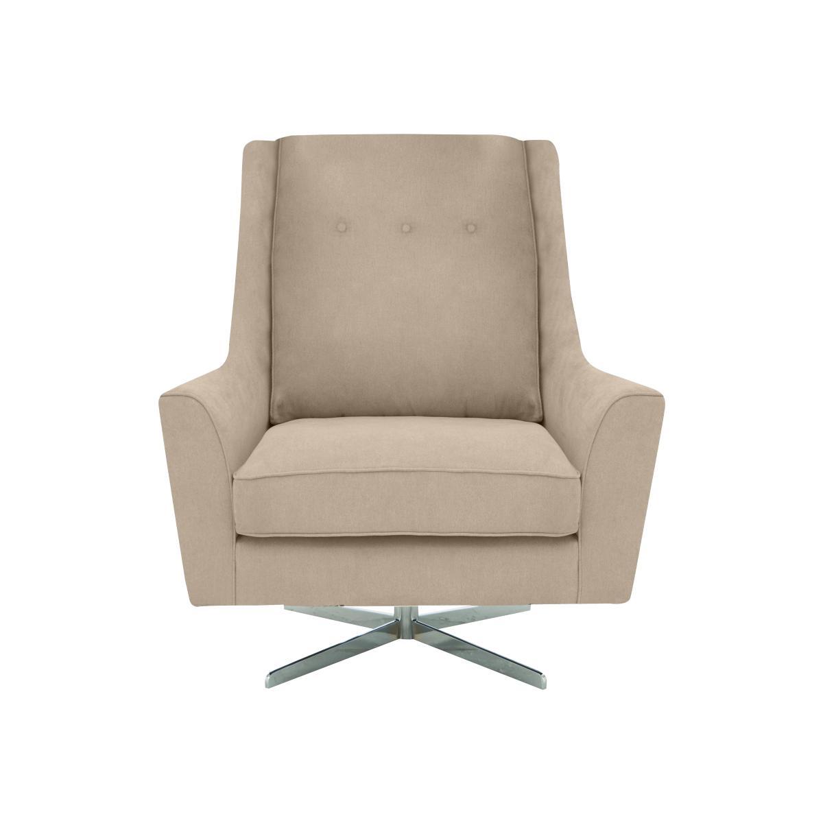 Fresh modern style, legendary comfort – that’s the Legend collection. The sofas, chairs and footstools have soft modern lines and polished chrome legs, and are upholstered in family friendly flat weave fabric in a choice of beautiful neutrals and bolds. Choose relaxed pillow backs or clean lined classic backs, then complete the look with some reversible accent scatters in a choice of vibrant contemporary patterns, available to buy separately. The legendary comfort comes from the sprung seats and backs with foam flex and supersoft foam topper seat cushions and luxury blown fibre back cushions. Made exclusively for Furniture Village. The Legend fabric designer swivel armchair has a high back, elegant silhouette and chic button detailing. High end contemporary style in a choice of fabric upholstery. Why you’ll love it. Chic, contemporary designer style. High back, finished with three buttons. Low, curved arms. Polished chrome, star shaped swivel base. Soft yet durable, flat weave upholstery. In a choice of colours and accent patterns. A Furniture Village exclusive. What you need to know. Medium comfort level. Sprung seat and back. Deep FoamFlex™ seat cushion with super soft foam topper. Luxury blown fibre back cushion. The upholstery is soft to the touch yet hardwearing. Finished with neatly tailored piping for durability. Hardwood and composite board frame. Polished chrome finish metal base. Some fabrics can show wear on areas of more use or in direct sunlight. Please read our. Upholstery care guide. For more advice. Part of the contemporary Legend range.