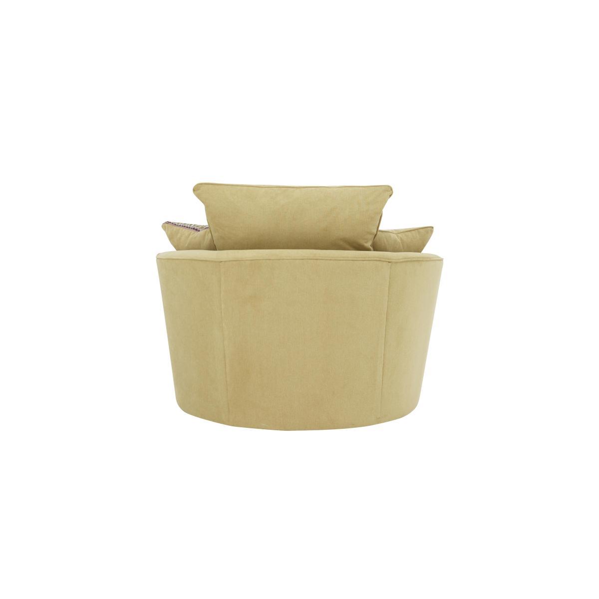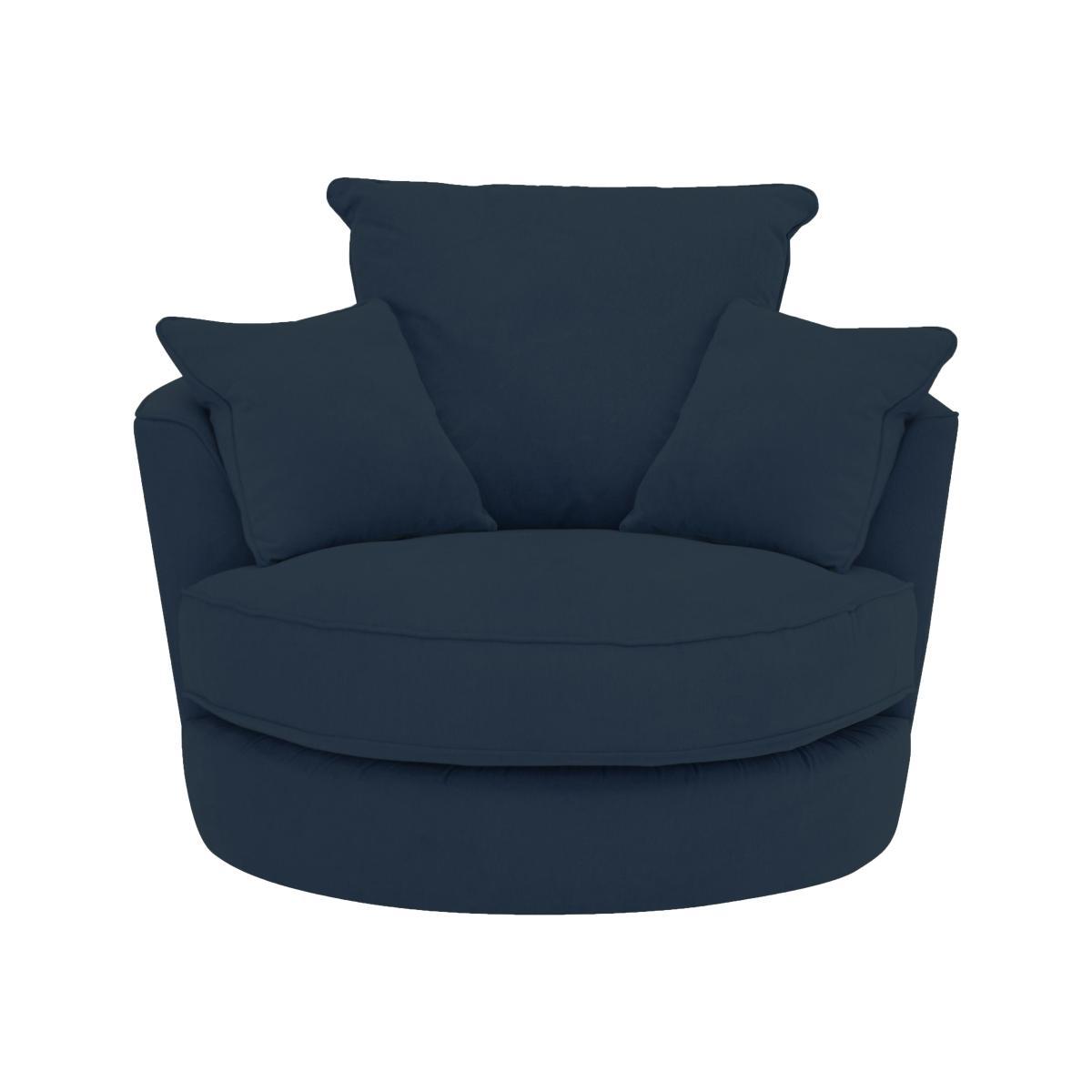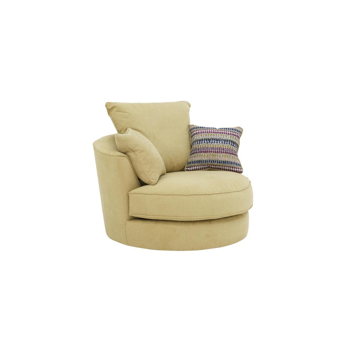 Fresh modern style, legendary comfort – that’s the Legend collection. The sofas, chairs and footstools have soft modern lines and polished chrome legs, and are upholstered in family friendly flat weave fabric in a choice of beautiful neutrals and bolds. Choose relaxed pillow backs or clean lined classic backs, then complete the look with some reversible accent scatters in a choice of vibrant contemporary patterns, available to buy separately. The legendary comfort comes from the sprung seats and backs with foam flex and supersoft foam topper seat cushions and luxury blown fibre back cushions. Made exclusively for Furniture Village. Snuggle up in incredible comfort and on the contemporary Legend fabric swivel chair. Roomy and luxurious, it encloses you cosily with its curved back and sumptuous cushioning. Why you’ll love it. Indulgently comfortable, large swivel armchair. Contemporary round silhouette with a curved back. Family-friendly fabric upholstery in neutral and bolder shades. Colourful accent cushions, available separately. Deep FoamFlex™ seat cushion with super soft foam topper. Sink into the luxury blown fibre back cushion. A Furniture Village exclusive. What you need to know. Medium comfort level. Sprung seat and back. The flat weave fabric upholstery is soft to the touch yet hardwearing. Finished with neatly tailored piping for durability. Reversible scatter cushions, in a choice of vibrant accent patterns, available to buy separately. Hardwood and composite board frame, shaped chrome finish legs. Some fabrics can show wear on areas of more use or in direct sunlight. Plump, turn and rotate seat and back cushions regularly if possible. Please read our upholstery care guide for more advice. Part of the contemporary Legend range.