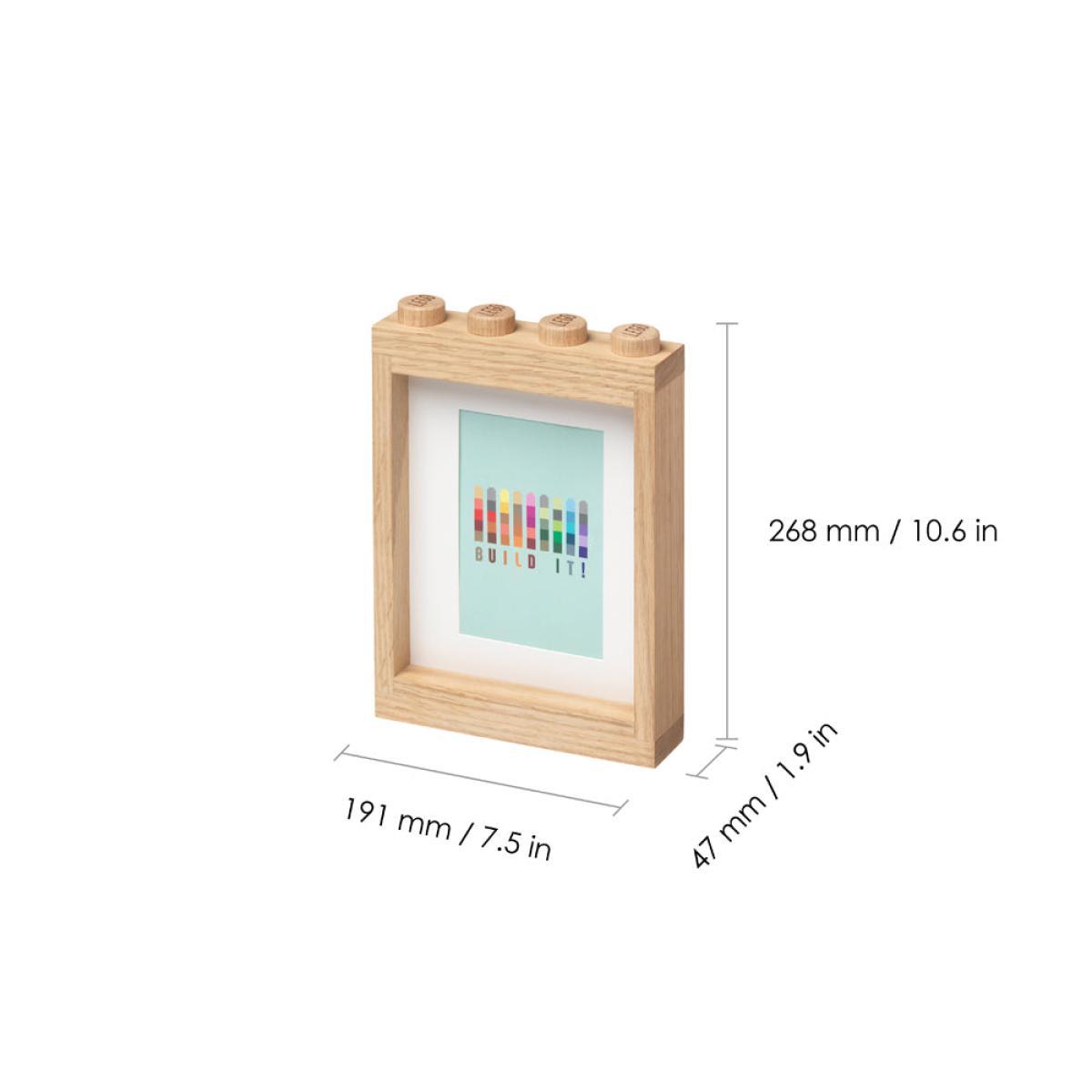 I love this wooden Lego-inspired frame for its playful yet minimal aesthetic, making it a versatile addition to a variety of interiors. It works particularly well in casual, cosy spaces like children's rooms or a relaxed living area, where its fun design adds character without overwhelming the decor. Practical styling tips include grouping it with other natural textures or wooden ornaments to create a cohesive look, or placing it in a shelving vignette alongside vases and soft textiles for an inviting display. Its washed wood finish gives it a subtle, tactile quality that complements rustic or Scandinavian-inspired schemes, while its toy-like design introduces a touch of whimsy to more modern interiors.