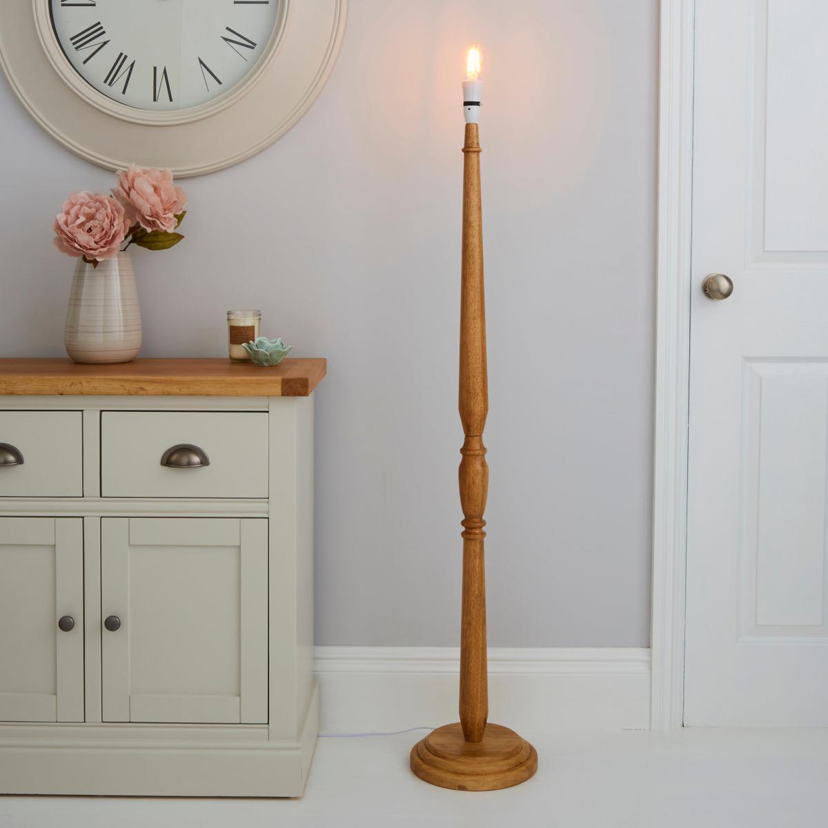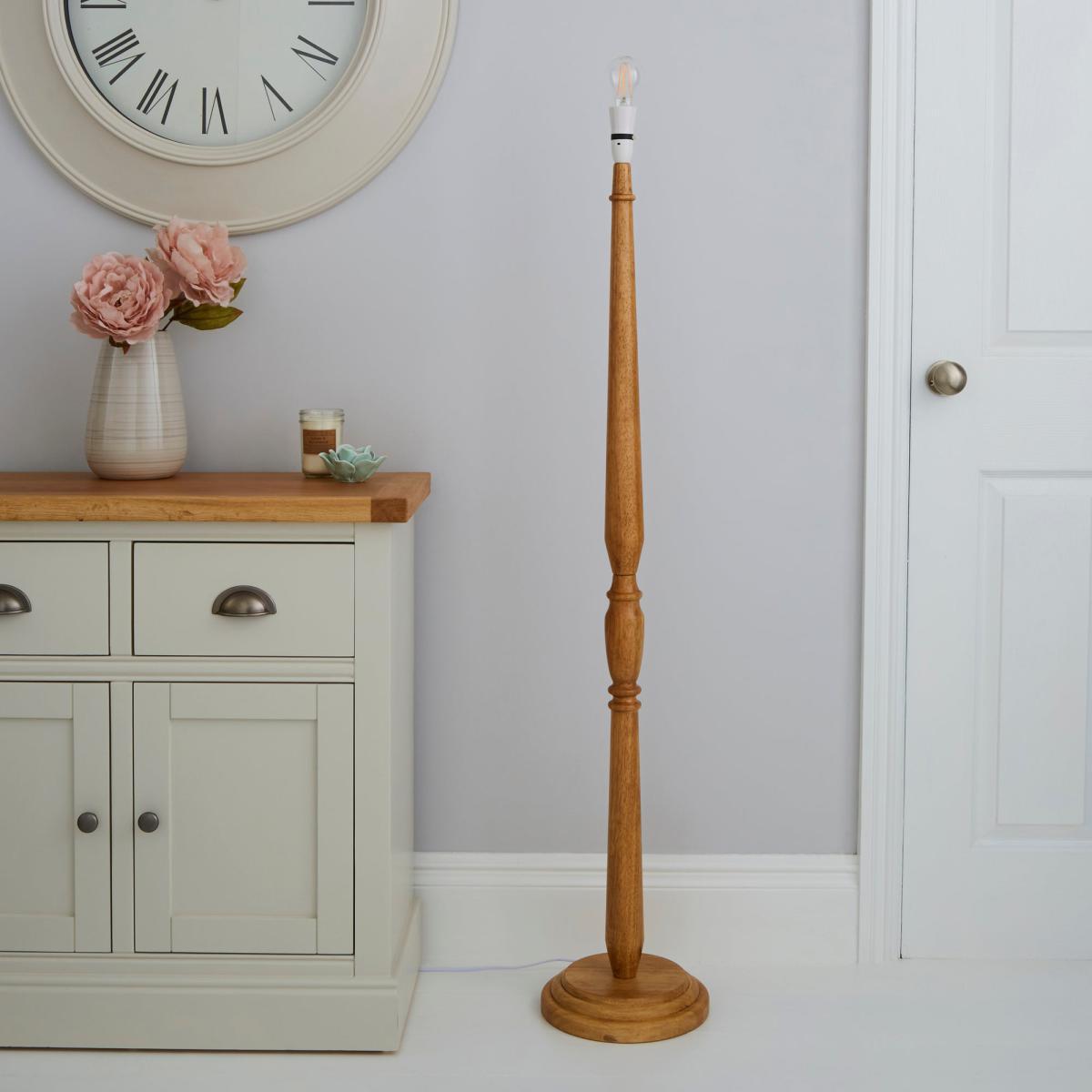 This wood floor lamp base would be ideal for any room interior. It features a natural wood finish with a sleek, oil finish and is supplied with a B22 bayonet cap lamp holder.