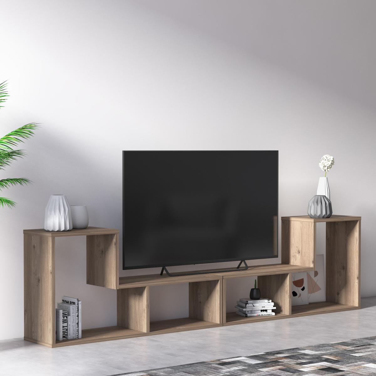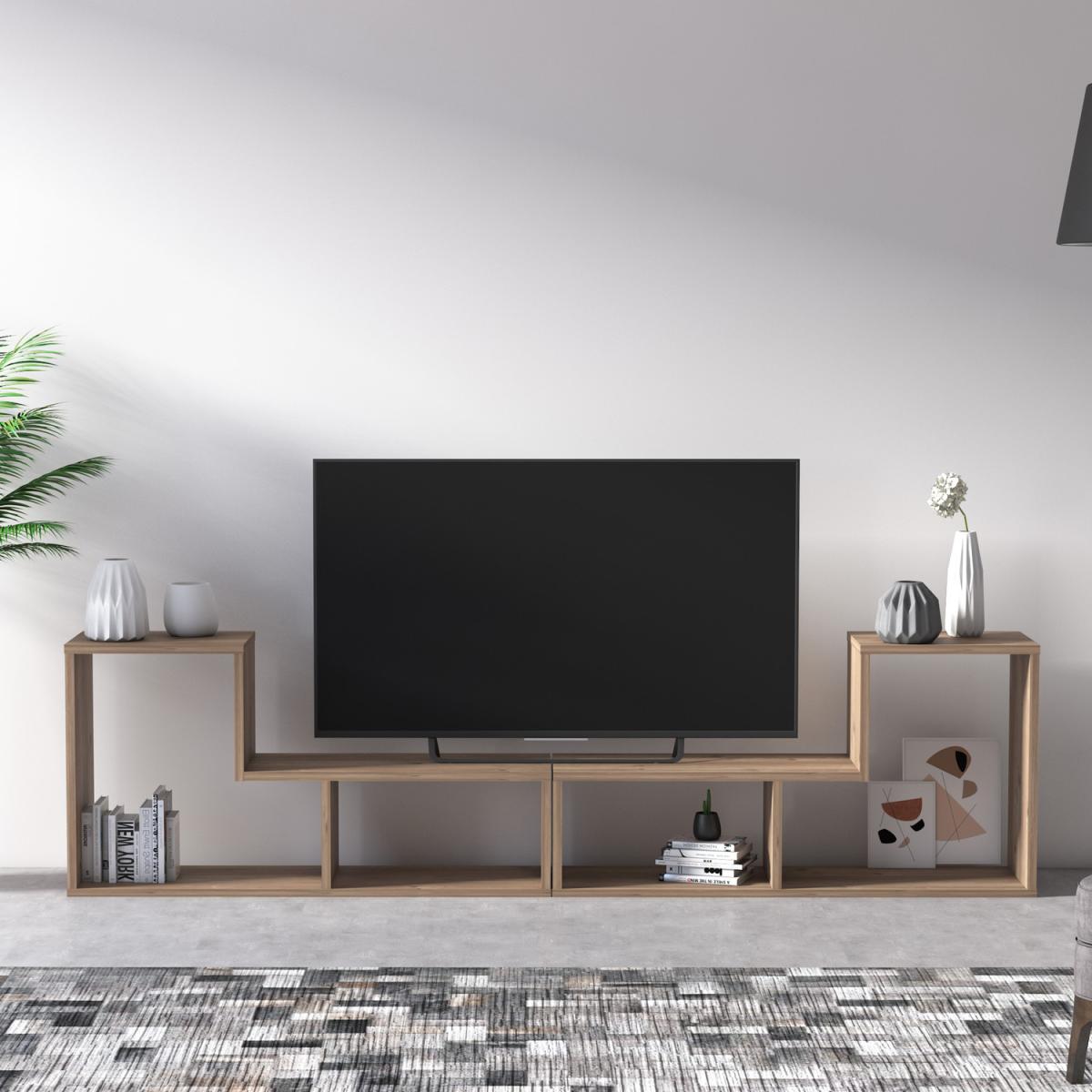 Ruumstore Legon TV Stand is 75'' width with 4 open shelves to make your life easier with storage areas. Dynamic and geometric design TV unit with easy assemble withminimum tools required. What do you need at home? Is it a library or a TV unit or the middle table? So how about having all of them with a single product? With its special design, Legon can be used as a library, TV unit and a middle coffee table. Moreover, those who like to make changes in their home often offer the opportunity to easily make any change in their decorations. Legon, which is your library one day, can be your TV unit another day. Stylish and efficient use for small spaces Legon provides a joyful TV corner in your room. You can place it to any room and use it as bookcase or display unit as well. It is easy to place in small spaces. Customer assembly required Our products have been shrinked on both sides as internally and externally to prevent the damages. All the packages have been quality tested. Accessories in the product images are for decoration purposes and are not included in the price.