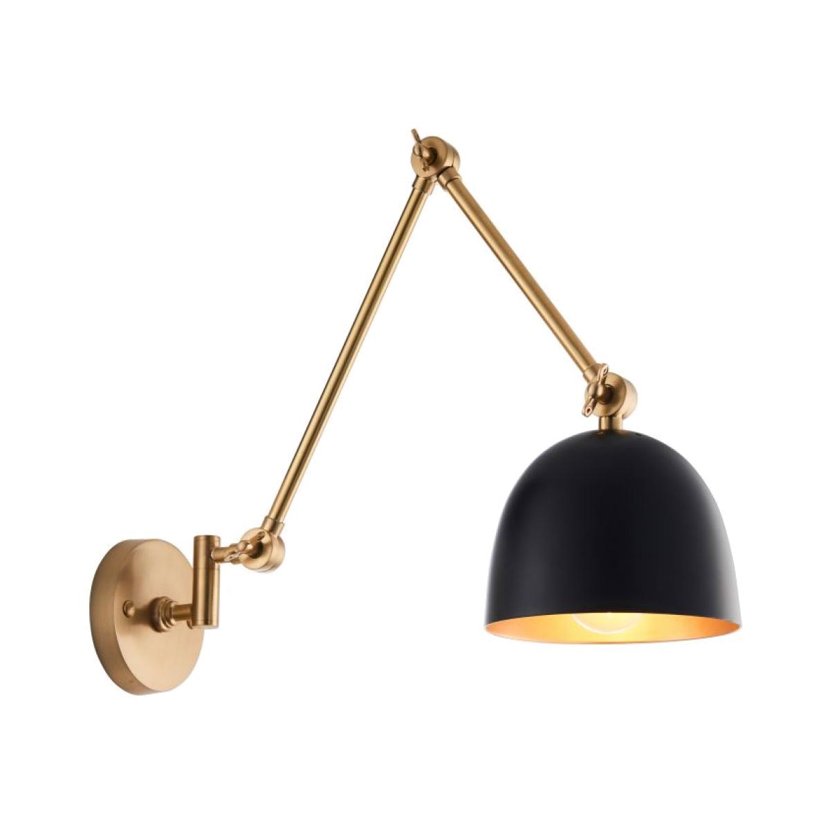 The perfect design statement, with fully adjustable arms, position either side of your bed or as a task light above a kitchen work top. This wall light constructed in brass with a striking combination of antique finish, with authentic knurled cast details and smart 'on-trend' matt black painted shade.