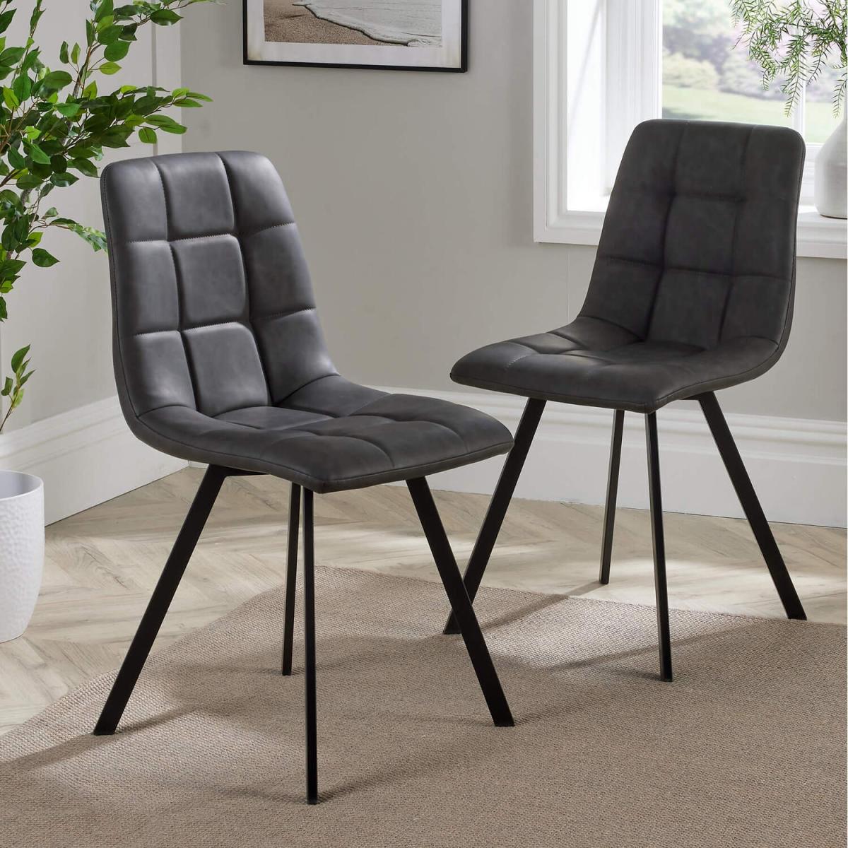 Stylish and comfortable, this subtle and simplistic dining chair meets the needs for the perfect spot to sit when eating your breakfast, lunch or evening meal at home. Simplistic and affordable, without compromising on style. The square design to the seat adds interest and is in a comfortable grey PU fabric. In contrast, the Scandi style square shaped tapered legs are sleek and black in finish for a contemporary look. This chair is perfect for your kitchen or dining area.