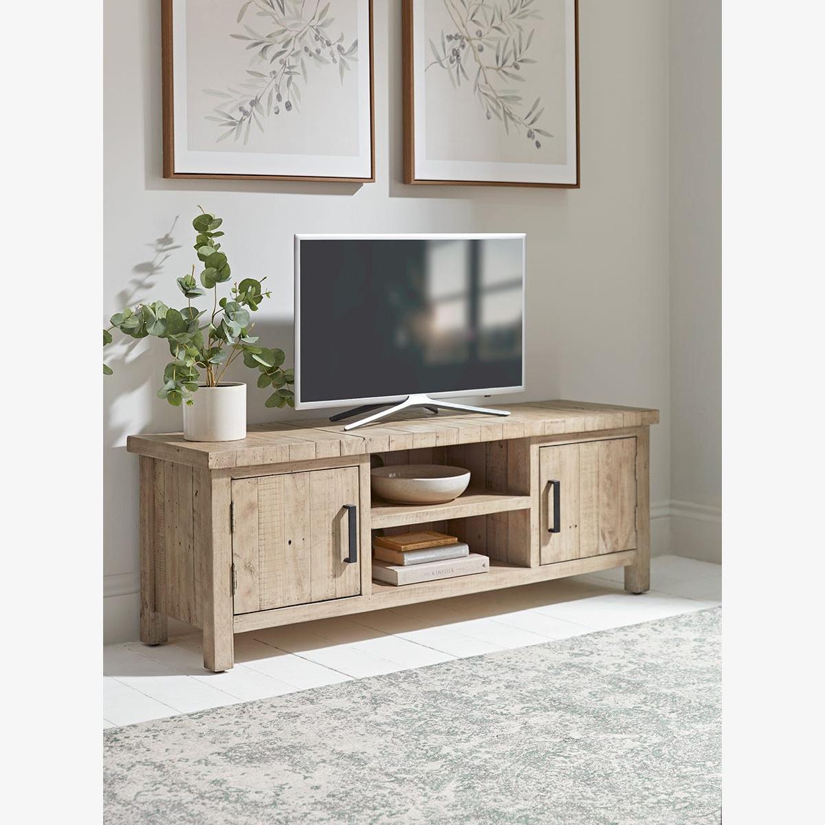 I’m a fan of the Leida unit for its lightly weathered oak-effect finish and clean lines - it adds warmth without feeling bulky. It works equally well in modern farmhouse, coastal or Scandinavian-inspired living rooms and even in a hallway as extra storage. To style it, balance the open shelf with a couple of low-profile books or a neat stack of magazines and hide media players in the cupboards. On top, keep it simple with a slim vase of greenery or a small lamp either side of the TV, and use cable-management clips at the back to maintain that uncluttered look.