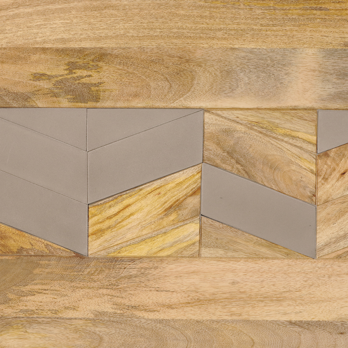 A stunning addition to stylish living room set-ups, the Leif coffee table displays classic Scandi characteristics with hints of mid-century modern. In natural Mango Wood, the table top is enriched with beautiful markings and tones, whilst contemporary concrete inlays provide stunning contrast. A classic parquet design details the horizontal panel, bringing traditional charm with a cool update, whilst splayed metal legs in warm brass complete the coffee table’s look with an elegant edge. Pair with the matching Leif TV Unit for effortless cohesion.