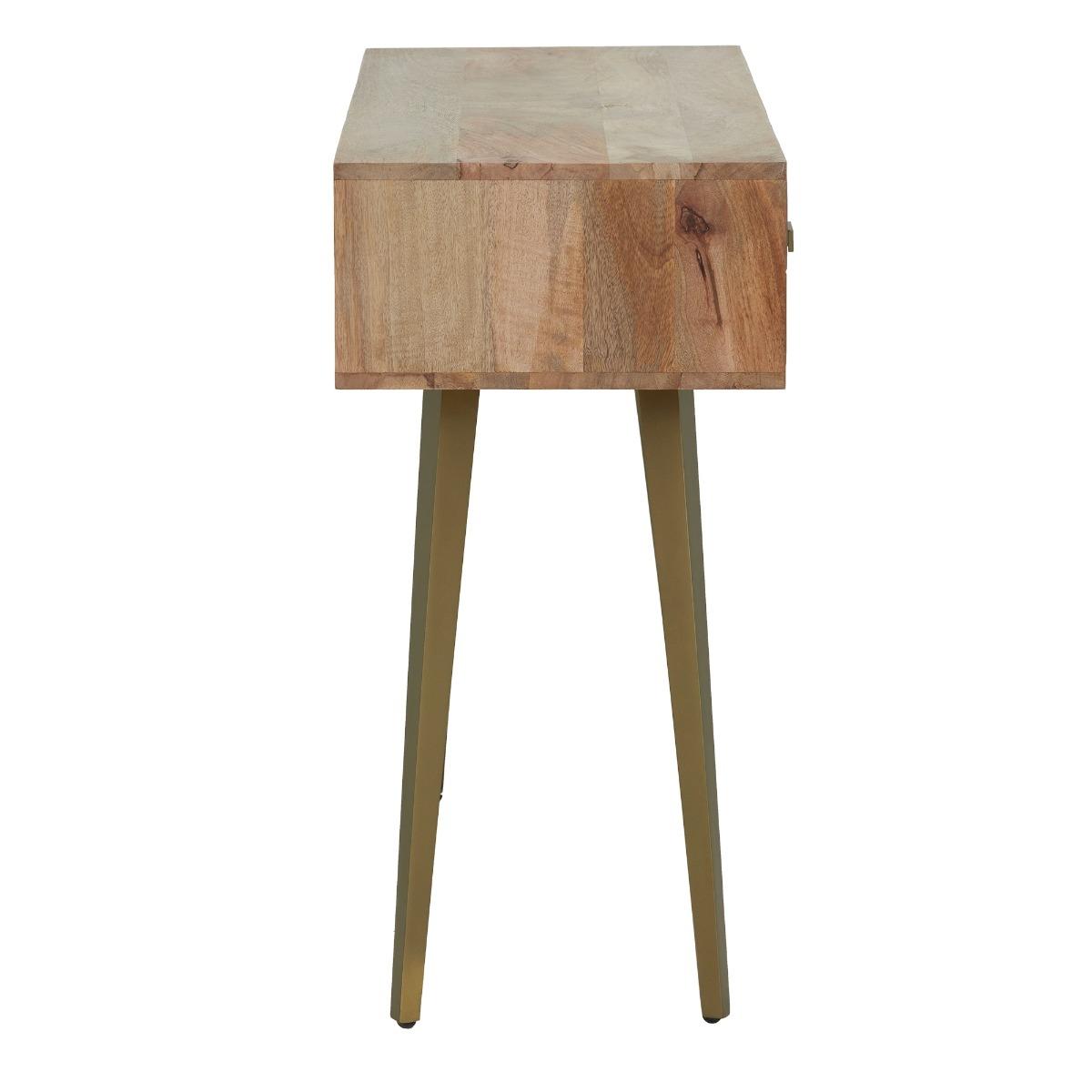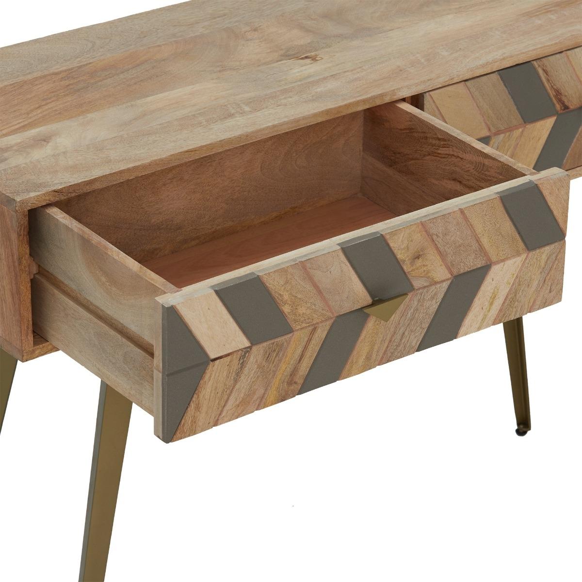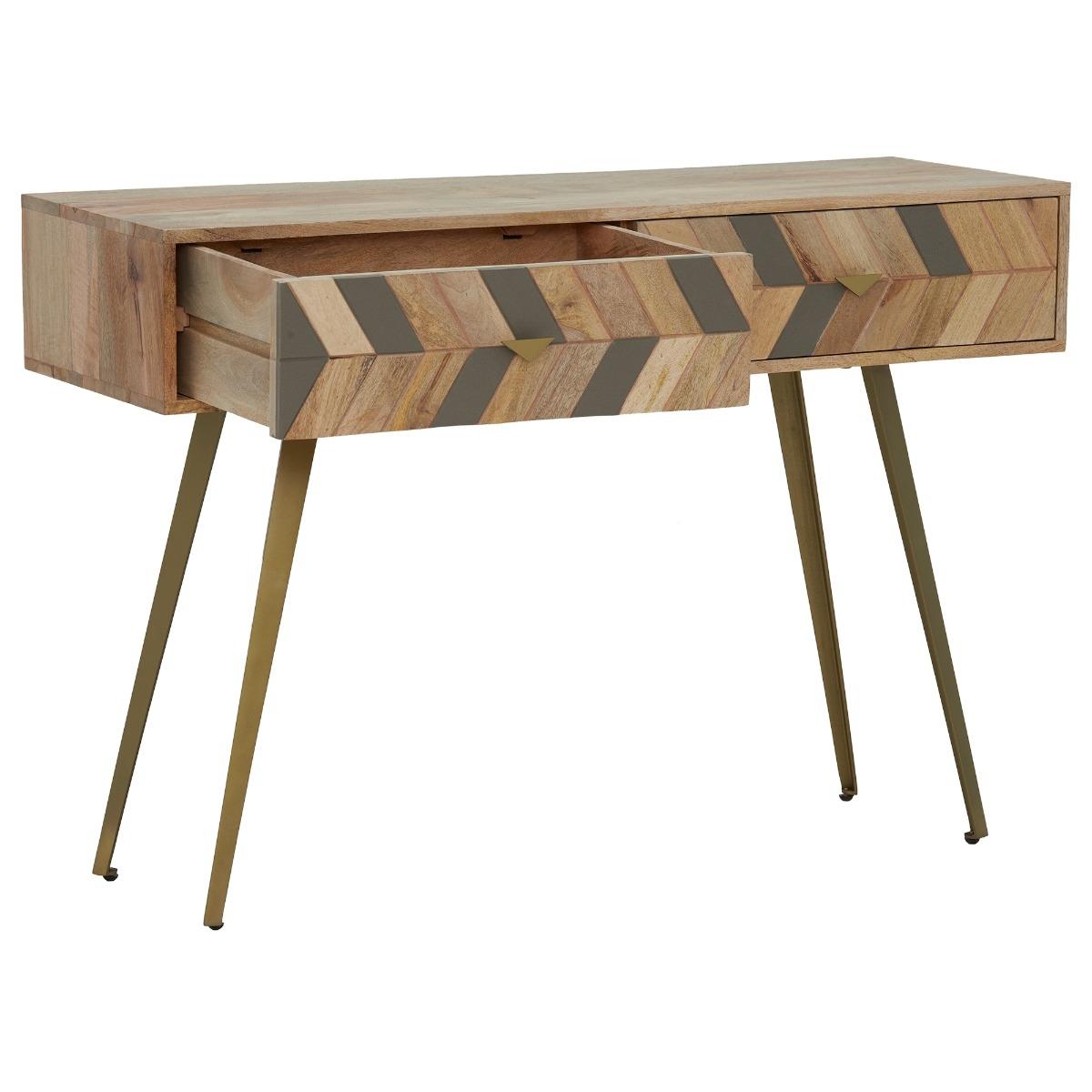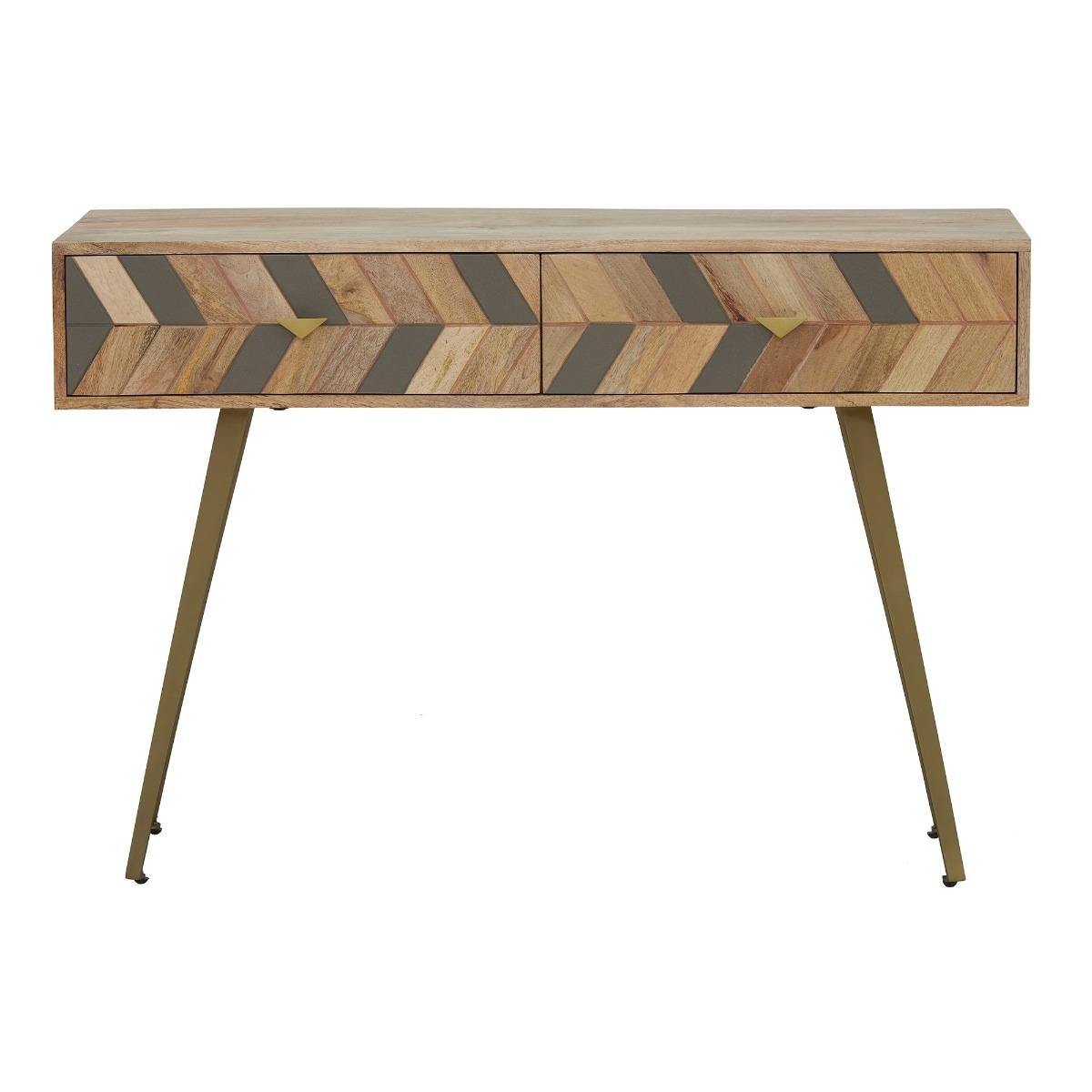 Design. The perfect first impression as you enter your hallway, the Leif Console Table, Natural Mango Wood with its quirky charm is certainly one that will impress. Contemporary with a rustic touch, this console table displays a unique design with the warmth of natural mango wood and. Sleek. , trendy finishes from. The grey. Tones and brass hardware. Full of character and sophistication, spruce up your space for the better.