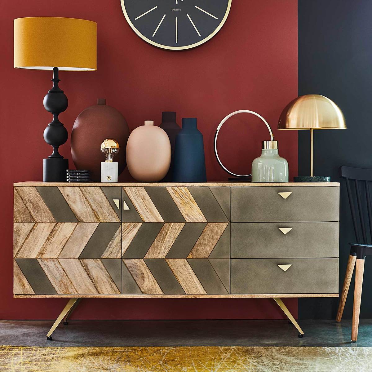 I love this sideboard for its blend of natural materials and contemporary design, making it a versatile piece in both modern and eclectic interiors. The natural mango wood adds warmth and texture, contrasting beautifully with the sleek grey drawers, giving it a stylish yet practical appeal. It works well in dining rooms, living spaces, or even a hallway to add character and storage. For styling tips, try layering with a mix of ceramics and greenery on top, and keep the drawers organised with baskets or trays to maintain a tidy look. Its clean lines and geometric details also make it an ideal statement piece that can anchor a room without overwhelming it.
