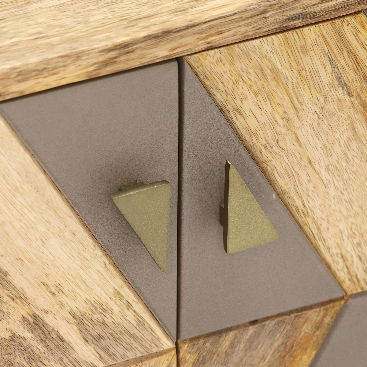 I really like this sideboard because of its blend of natural warmth and modern design. The use of mango wood adds a richness and texture that works well in both contemporary and bohemian interiors, especially when paired with neutral tones or layered textures. It’s versatile enough to serve as a media unit in a living room or a storage piece in a dining area. For styling, I recommend keeping it simple with a few decorative objects like ceramics or a statement vase, and perhaps adding some colour contrast with books or textiles. Its clean lines and subtle detailing make it a practical, stylish choice that can elevate various interior schemes.