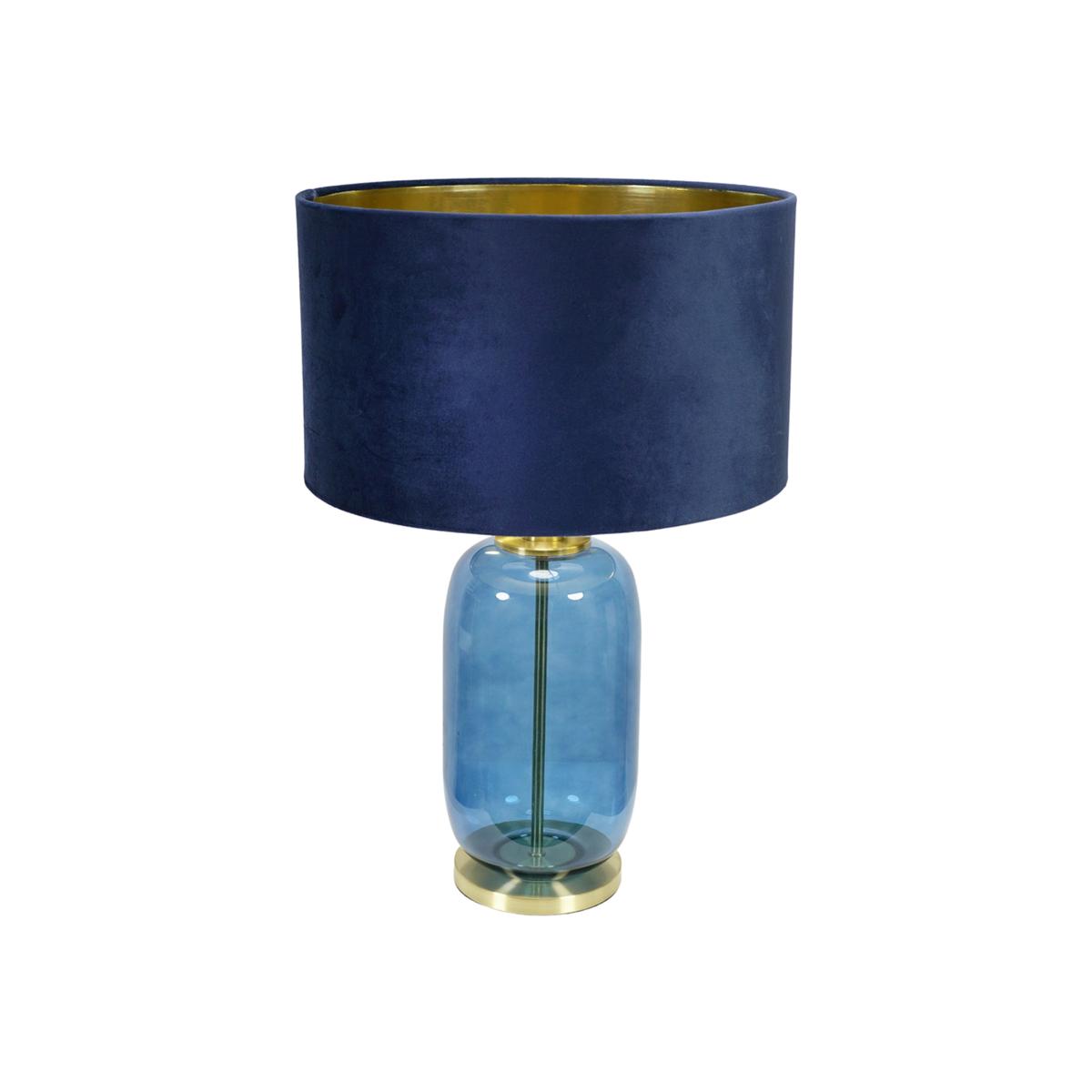 Leigh Navy Blue Glass Table Lamp with Velvet and Gold Inner Shade and Bulb - Navy