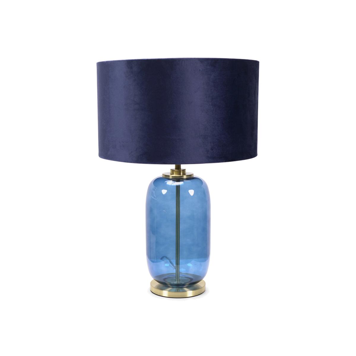The Leigh blue glass table lamp adds dimension to any room in more ways than one. The glass lamp base reflects and doesn't obstruct the light in the room, enhancing your lighting scheme and the effect of natural light. Paired with the navy velvet shade. A freestanding glass table lamp base with gold details and a velvet shade features a rocker switch on a 150cm cable. A rounded blue glass table lamp base that lets the colour do the talking, the perfect base to mix and match with this navy velvet drum shade. Make a statement with all that space. Ideal for turning an empty side table into a moment. Best in living rooms, hallways and bedrooms. Requires 1x E27 bulb, personalise your lighting with your choice of warm, cool or smart bulb. All bulbs are LED by default. Doesn't require installation, just plug into any UK plug socket and get glowing! Comes with a 150cm cable for hard-to-reach areas.
