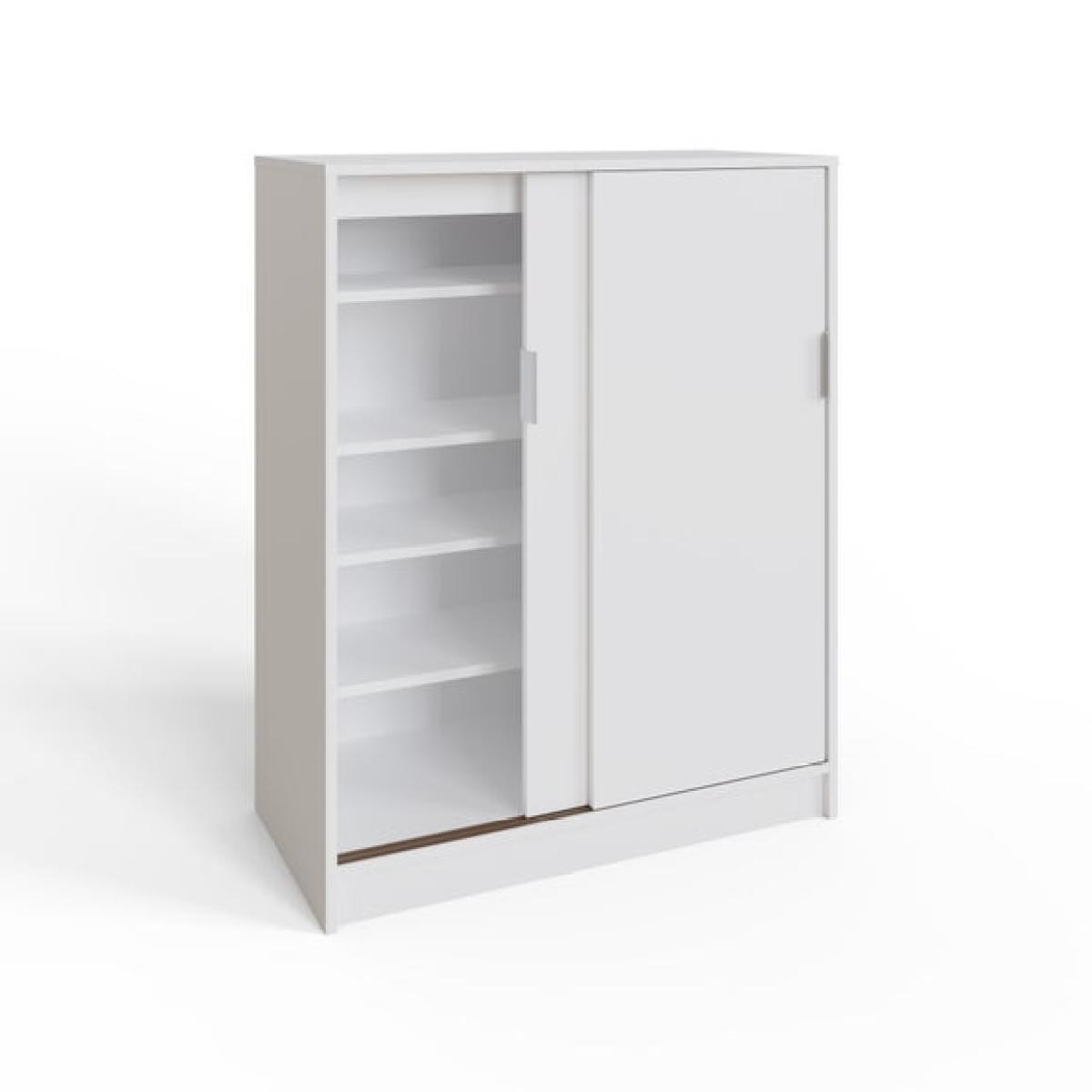 * Large cabinet * Wooden frame * Stores 18-22 pairs The Leighton shoe cabinet is a high-capacity storage solution that holds up to 22 pairs of men’s UK size 10 shoes with ease. Featuring smooth sliding doors, it’s ideal for narrow hallways or busy entryways, keeping your footwear organised and out of sight.