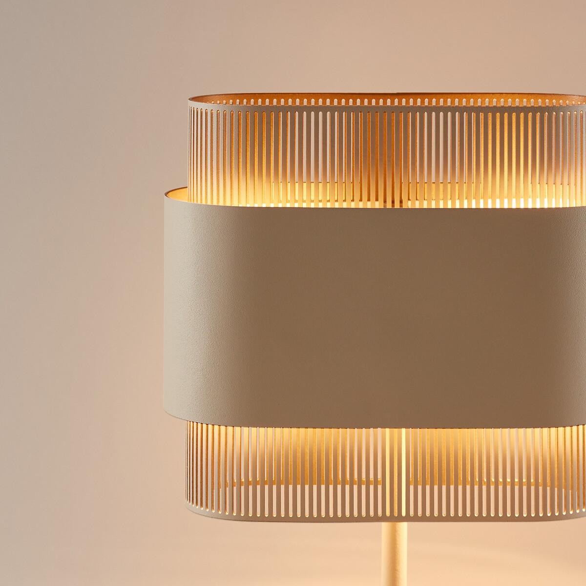 I love this lamp for its sleek, modern profile and versatile design. The double iron structure gives it a contemporary edge, making it a great addition to both minimalist and Scandinavian-inspired interiors. It works particularly well on side tables, desks, or bedside tables where its compact size and soft lighting can make a subtle style statement without overpowering the space. For practical styling tips, pair it with neutral tones and clean lines for a cohesive look, or combine it with natural textures like wood or linen to add warmth. Its understated elegance makes it a functional yet decorative piece that blends seamlessly into various schemes.