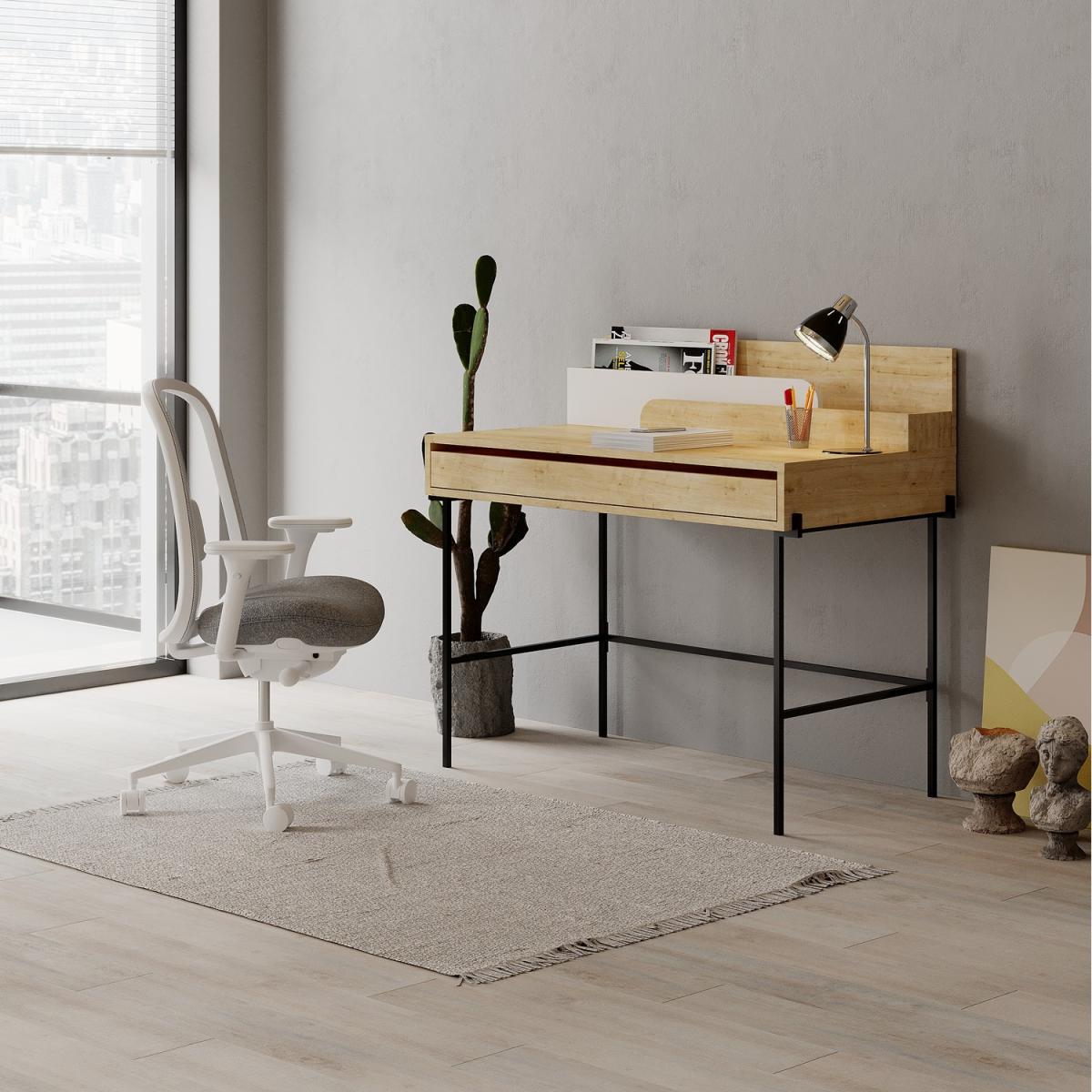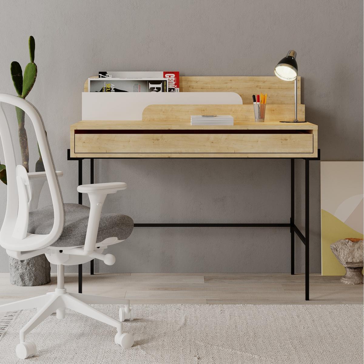 Transform your workspace with our unique design desk. Featuring sleek metal legs for added durability. Keep your workspace organized with handy compartments for storage. Choose from a variety of color options to complement your decor. Elevate your space and work in style with this must-have addition to your home or office.