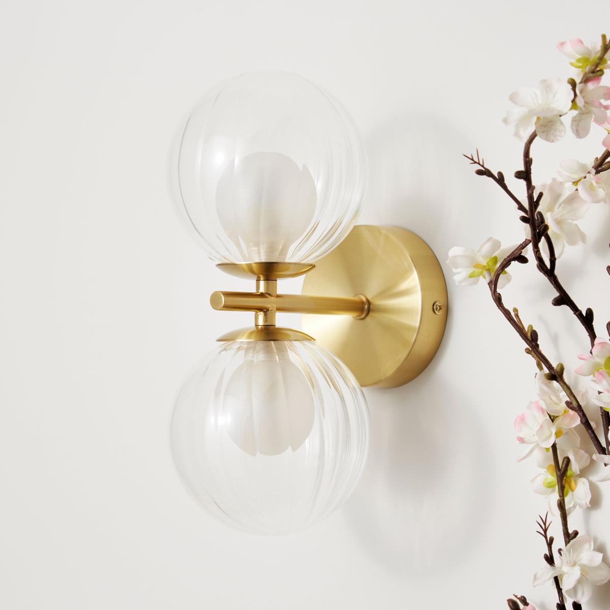* Ribbed Glass* Unique Design Infusing a dazzling blend of double-layer glass shades and a luxurious satin brass finish, this wall light is a showstopper. Prepare to be captivated as the two exquisite double-layer glass shades take centre stage, commanding attention. Illuminate your space with a touch of sophistication that not only brightens the room but also becomes an irresistible focal point in its own right.
