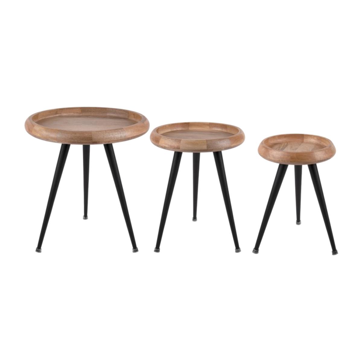 Leitmotiv Mango Wood and Black Metal Tripod Table Set
