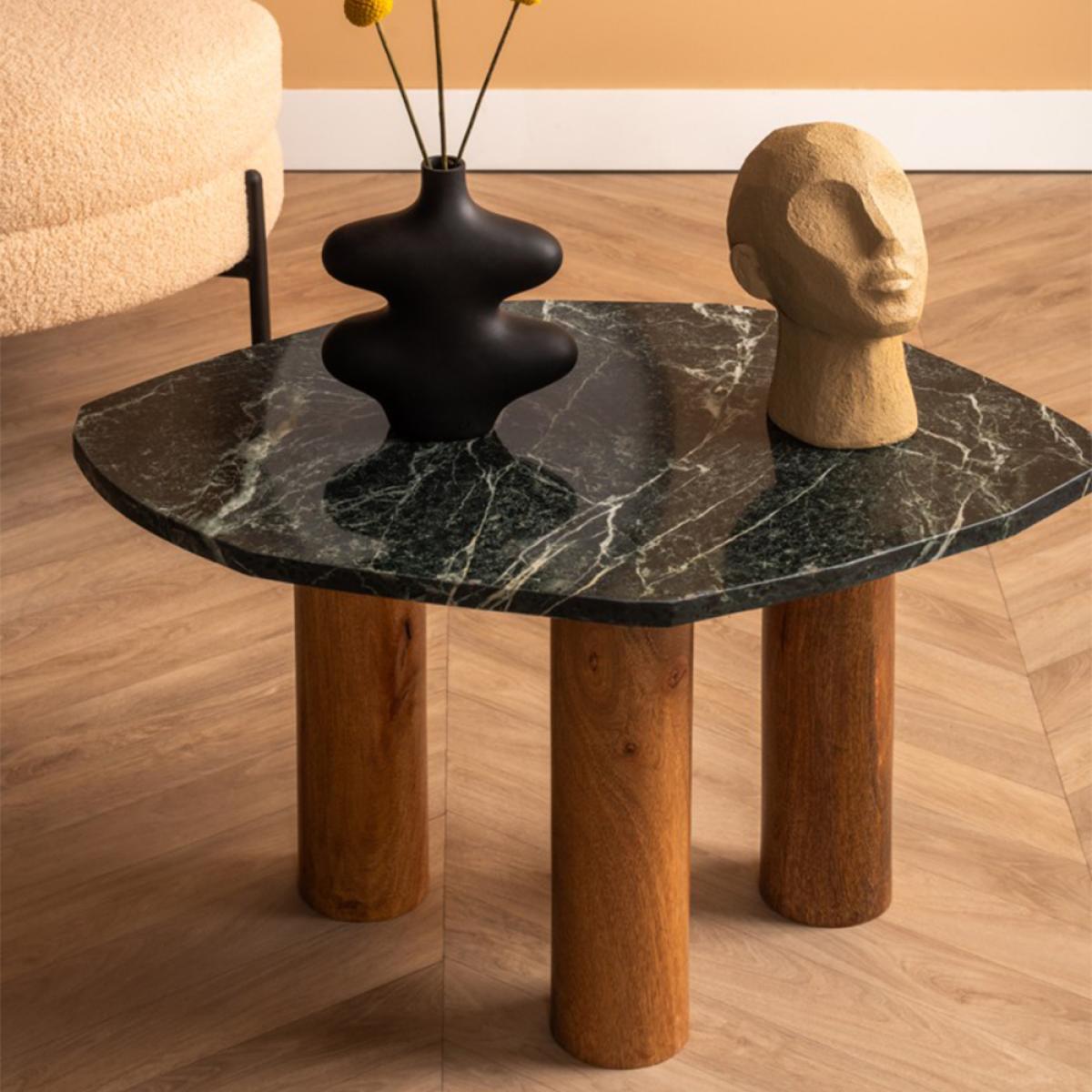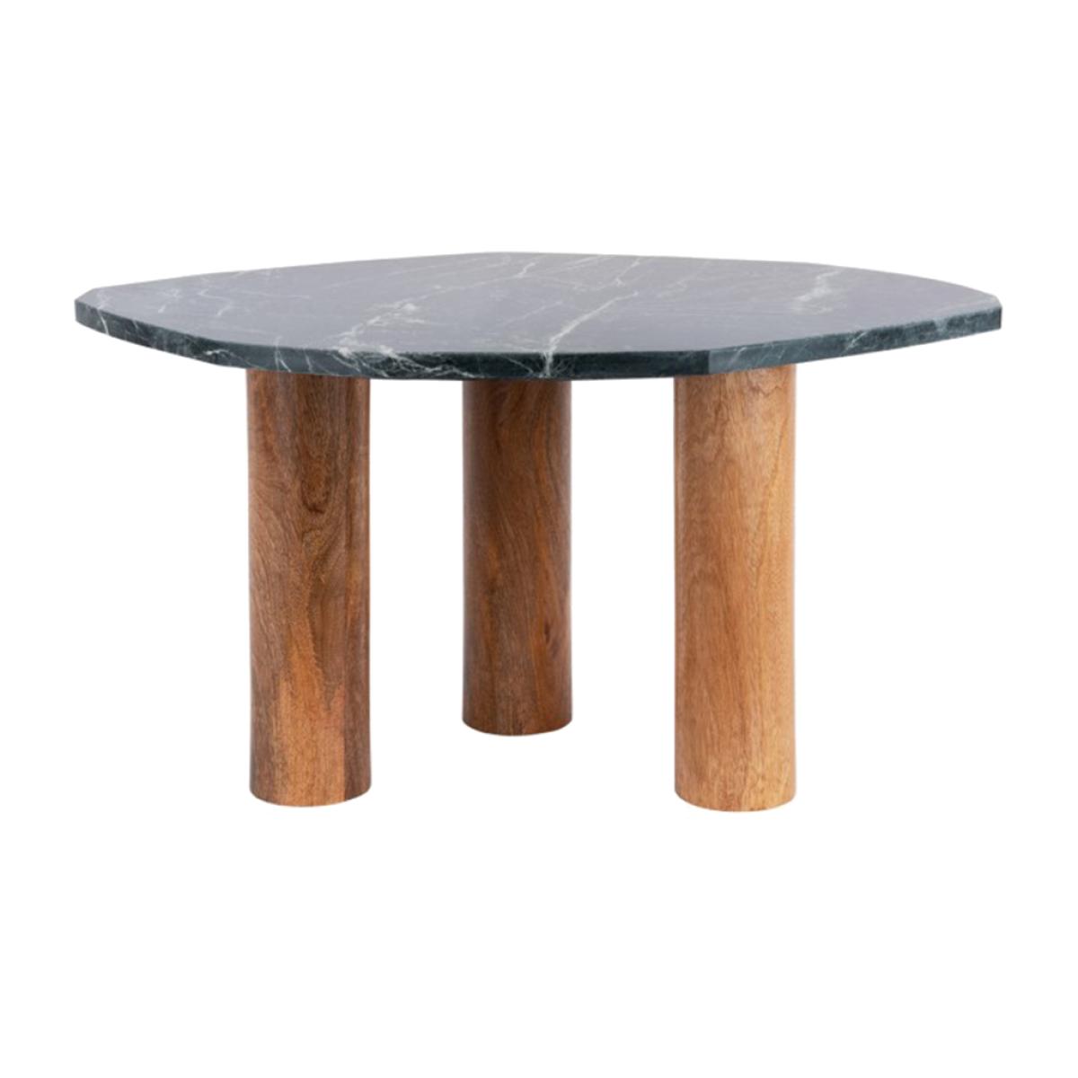 The Organic Marble Dark Green Table by Leitmotiv is on trend with its marble and organic shape, adding a touch of sophistication and luxury to any living space. The warm wooden legs provide a striking contrast to the cool, smooth marble, offering a harmonious blend of textures and tones. These sturdy wooden legs not only enhance the table's stability but also infuse a touch of rustic charm into its overall aesthetic, making it an ideal focal point for your home. Dimensions:H:40 x W:50 x D:50cm Materials: Marble Assembly Required: No Care Instructions:Wipe with a clean, damp cloth. Dry with a clean, soft cloth. No harsh abrasives or cleaners