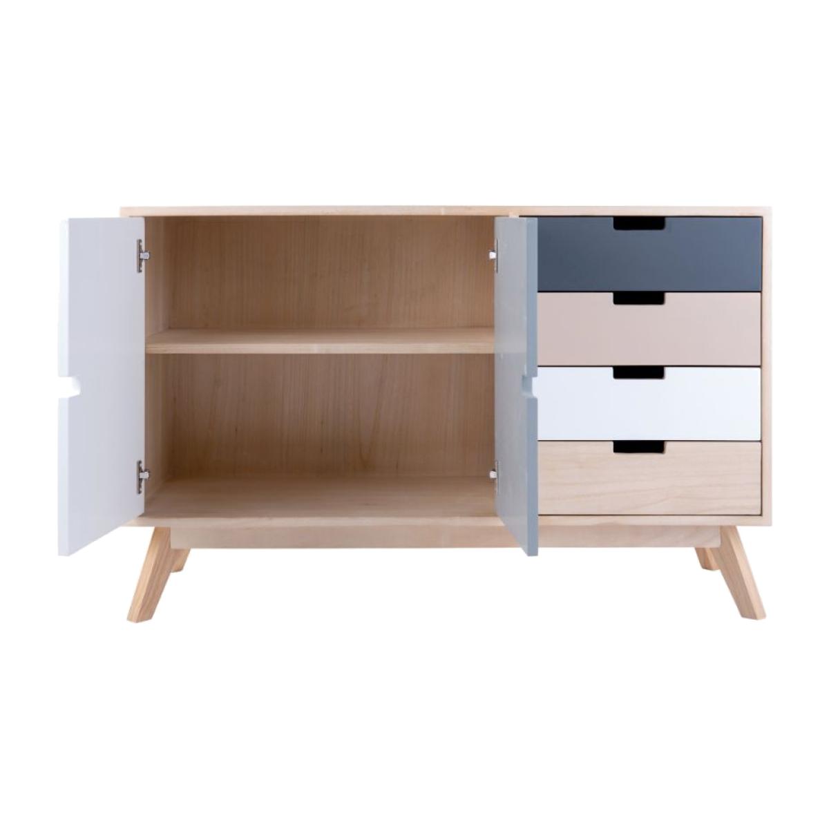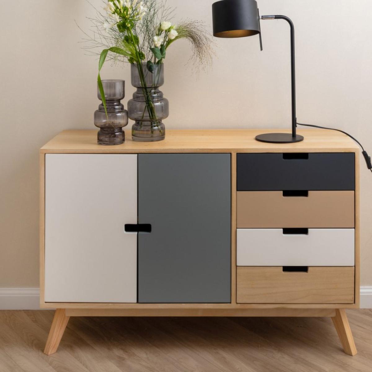 Cabinet Snap Doors 4 Drawers by Leitmotiv Bring a touch of contemporary style to your home with the Cabinet Snap Doors 4 Drawers by Leitmotiv. This sleek and modern cabinet is the perfect addition to any living space, providing both storage and aesthetic appeal. Stylish and Practical Design The Cabinet Snap Doors 4 Drawers features a unique snap door design that adds a touch of elegance to your home. The cabinet is made of high-quality MDF and is available in a stunning light blue color that will complement any decor. The Cabinet Snap Doors 4 Drawers is no exception. The cabinet is built to last, with durable materials and exceptional attention to detail. The snap door mechanism is easy to use and adds an extra layer of security to your belongings. Dimensions: W:100 x H:65 x D:36cm Materials: Paulownia wood Assembly Required:Yes Care Instructions: wipe clean with a soft damp cloth
