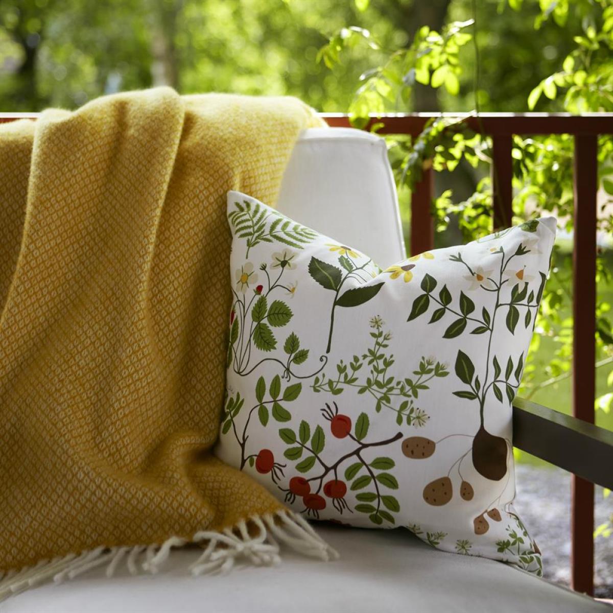 The Leksand cushion cover was designed by Edholm Ullenius for the Swedish brand Klippan Yllefabrik. Leksand is a locality in the Swedish province of Dalarna, close to one of Sweden’s biggest lakes: Siljan. The patterns were inspired by the local Swedish flora to create a colorful pattern that will bring some life into the home. Available in different colors.