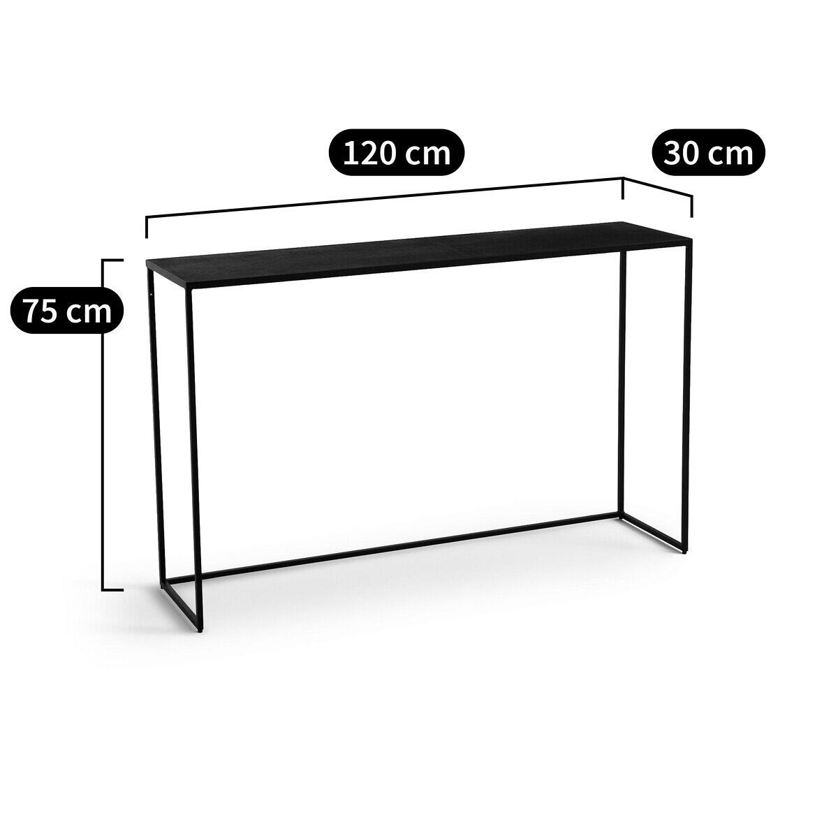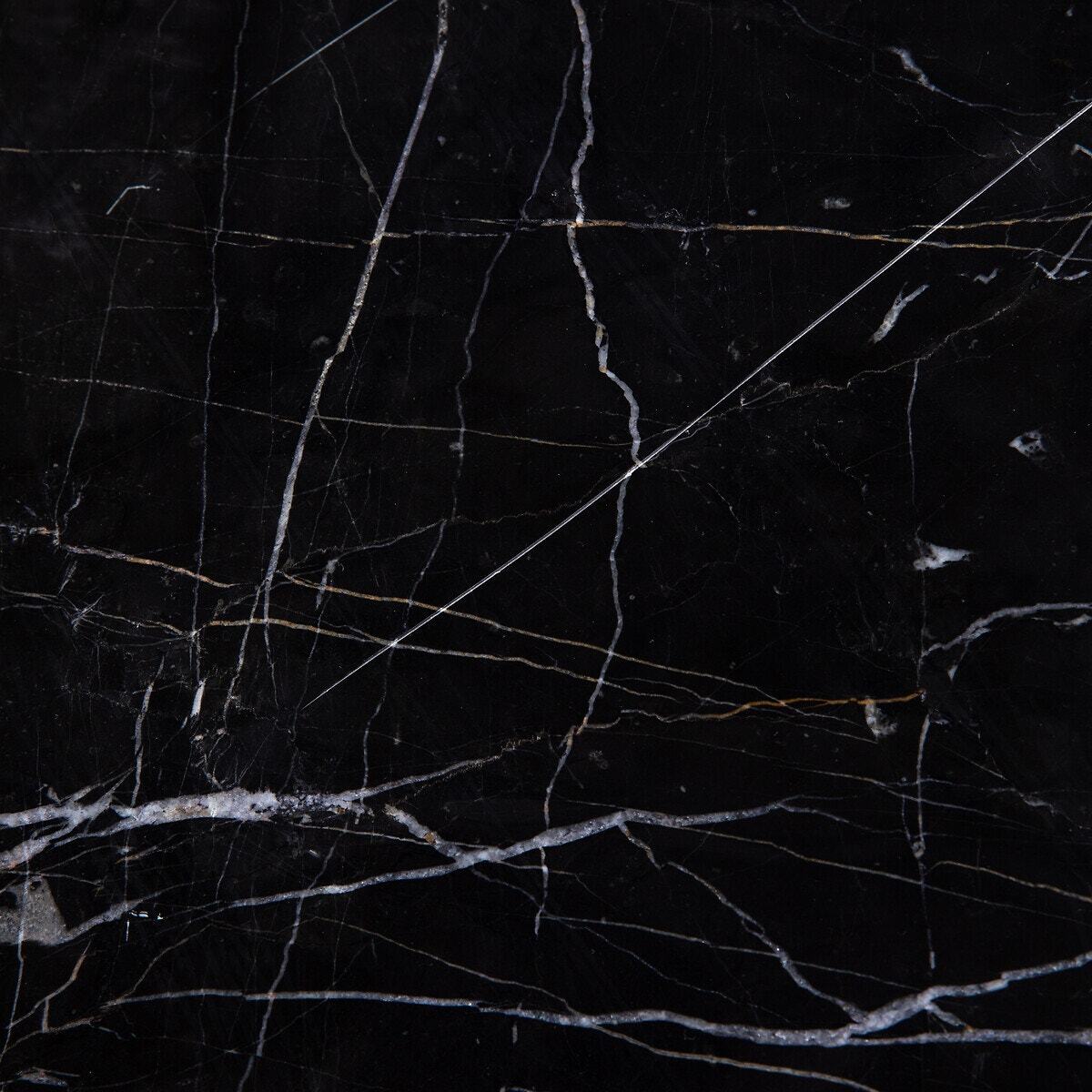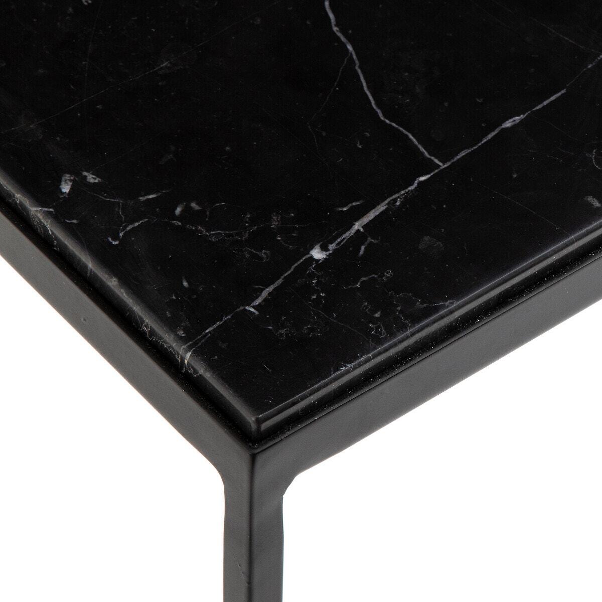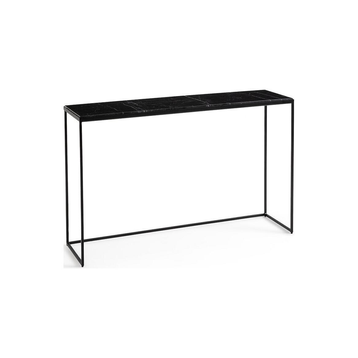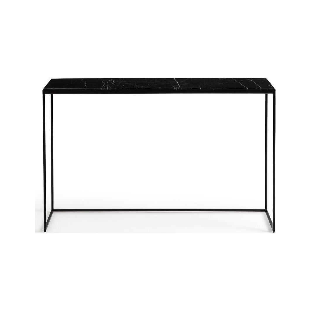 With its black marble top and thin black metal base, the Leland console is a refined and timeless piece of furniture..