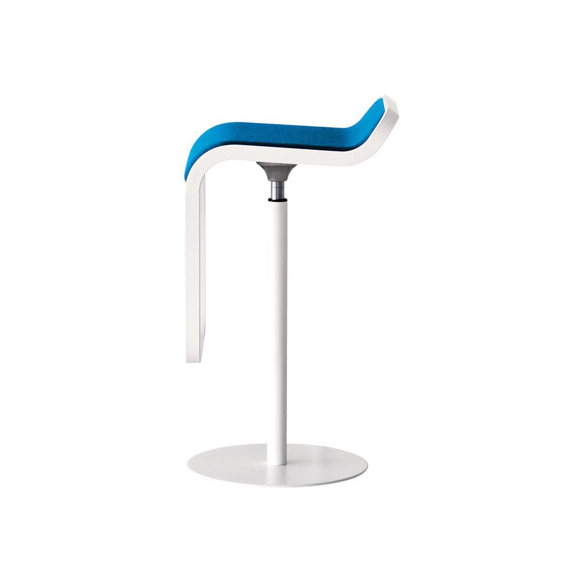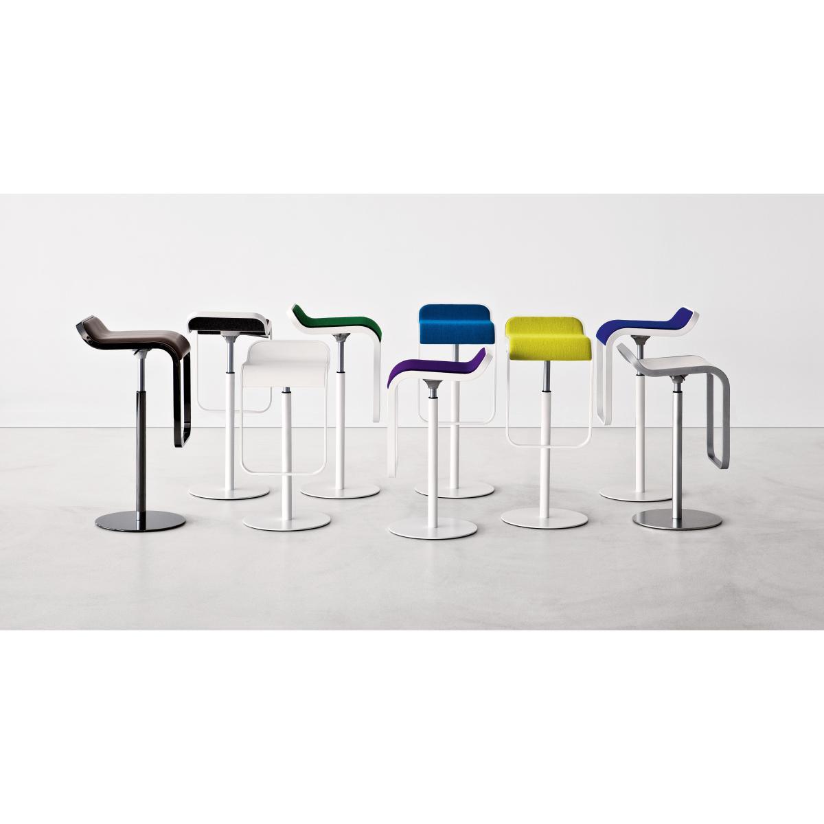 Stool with swivel seat and adjustable height with gas spring. Metal frame mat chromed and base in zinc-plated metal covered by a stainless steel sheet. Seat in Corian. Designed by Shin & Tomoko Azumi, the bar stool Lem has become a real design classic. Whether in a bar, on a fair or at home - Lem always provides an elegant and comfortable seating. The bar stool rotates and due to its gas spring it is adjustable in height. The base frame consists of high-quality mat chromed metal. The seat is made of different materials and is available in numerous colours.