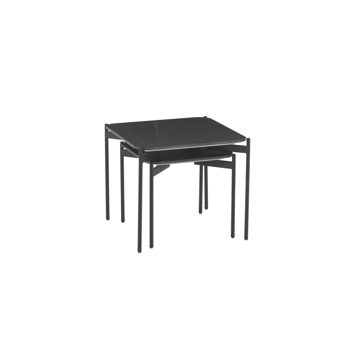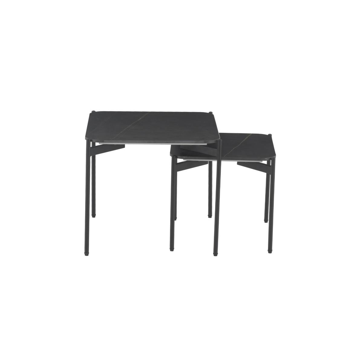 We love a nest of tables – they’re so ergonomic and versatile – and this one is a beauty. The durable black ceramic top has gorgeous gold veining. Why you'll love it. This ceramic nest of tables is effortlessly stylish and very practical. On-trend contemporary style for compact living spaces. Black ceramic tops with gold patterning is so unique. Rounded black powder-coated metal legs. A family-friendly choice, ceramic is heat-, scratch- and chip-resistant. This great-value nest of tables is part of the Lemi range. What you need to know. Ceramic tops, metal legs. Although very durable, ceramic is not 100% heatproof. Tighten bolts every 6 months. We recommend the use of coasters and placemats. Wipe clean with a soft, slightly damp cloth.