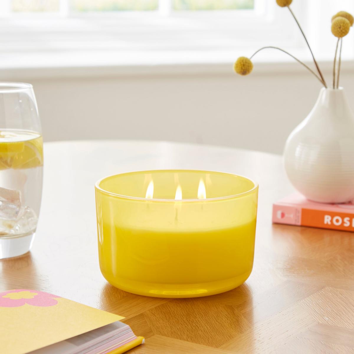 I love this lemon and yuzu wick candle for its vibrant colour and fresh, invigorating scent-perfect for bringing a burst of sunshine into any space. Its bold yellow hue works particularly well in modern, minimalist interiors or Scandinavian-inspired schemes, adding a pop of colour and a sense of warmth. For practical styling, position it on a natural wood or white surface to let its brightness stand out, and pair with neutral accessories for balance. It also works well as a centrepiece or in a grouping with other candles or greenery to create a relaxed yet curated look. Just ensure the candle is placed on a heat-resistant tray or holder, especially if you’re lighting it regularly.