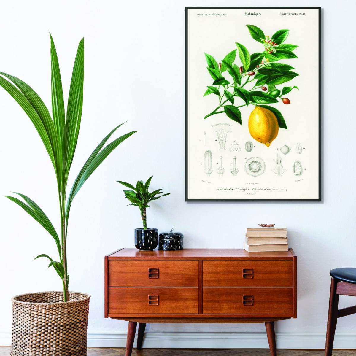 The lemon print is a fresh and vibrant piece that brings a touch of nature indoors, making it ideal for creating a lively yet relaxed atmosphere. I love it because it pairs well with both modern and vintage interiors, particularly in kitchens, dining areas, or even living rooms where a pop of colour is desired. To style it effectively, consider matching it with greenery or natural wood tones in the surroundings to enhance its organic feel. It works well framed in simple, minimalist settings or combined with other botanical prints for a gallery wall. For a cohesive look, keep the colour palette light and airy with whites and soft neutrals, allowing the bold lemon and green leaves to stand out as focal points.