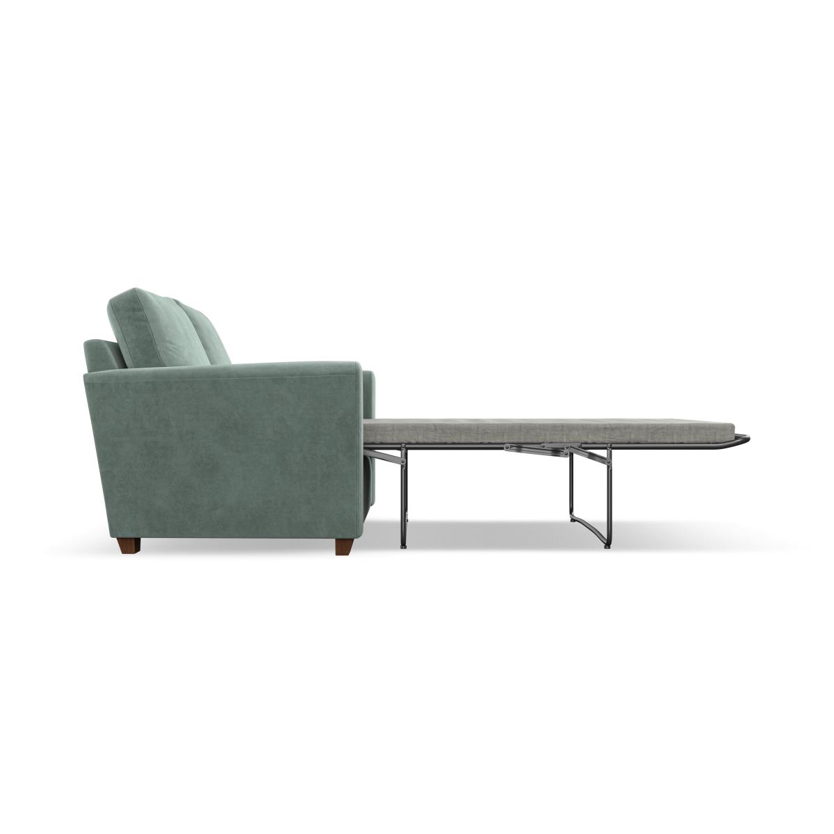 * Classical modern style * Flared arms * Stitched arm detailing * High back * Serpentine seat springs * Choose your support, fabric and leg colour This sofa bed's understated design features a graceful swept arm and fine top-stitched detail, blending effortlessly into any décor. Generously filled back cushions provide superb support, while the hidden bed easily unfolds to offer a comfortable sleeping solution for guests. Choose from foam or ‘Qualofill Blue’ fibre seat fillings and select from two elegant leg finishes. Durable serpentine springs ensure lasting comfort, making this sofa bed a smart and stylish addition to any home.