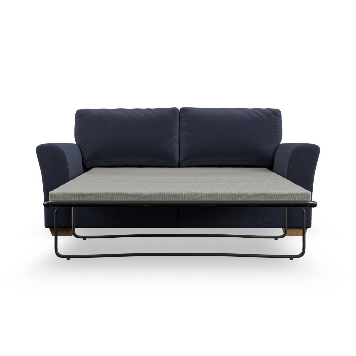 * Classical modern style * Flared arms * Stitched arm detailing * High back * Serpentine seat springs * Choose your support, fabric and leg colour This sofa bed's understated design features a graceful swept arm and fine top-stitched detail, blending effortlessly into any décor. Generously filled back cushions provide superb support, while the hidden bed easily unfolds to offer a comfortable sleeping solution for guests. Choose from foam or ‘Qualofill Blue’ fibre seat fillings and select from two elegant leg finishes. Durable serpentine springs ensure lasting comfort, making this sofa bed a smart and stylish addition to any home.
