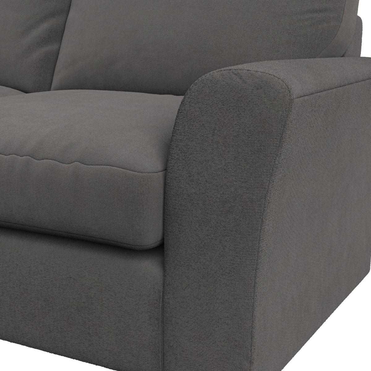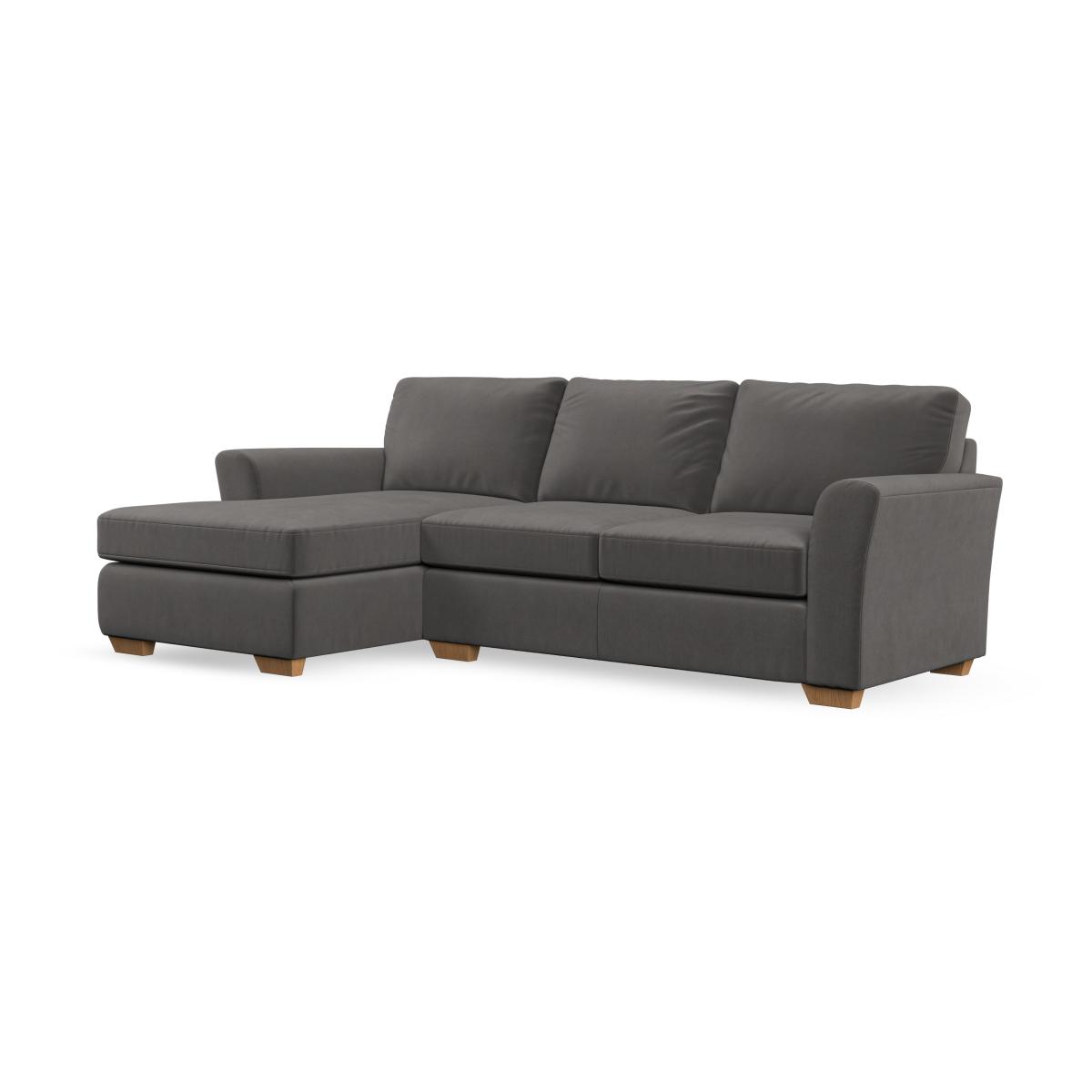 * Classical modern style * Flared arms * Stitched arm detailing * High back * Serpentine seat springs * Choose your orientation, support, fabric and leg colour This sofa's sleek, understated design features gracefully swept arms and subtle stitching details. The spacious layout is complemented by high, fibre-filled back cushions for excellent support. Tailor your comfort with a choice of foam or ‘Qualofill Blue’ fibre seating. Durable serpentine springs and sturdy hardwood legs in two finishes ensure this piece is as practical as it is stylish—perfect for relaxing or entertaining in contemporary living spaces.