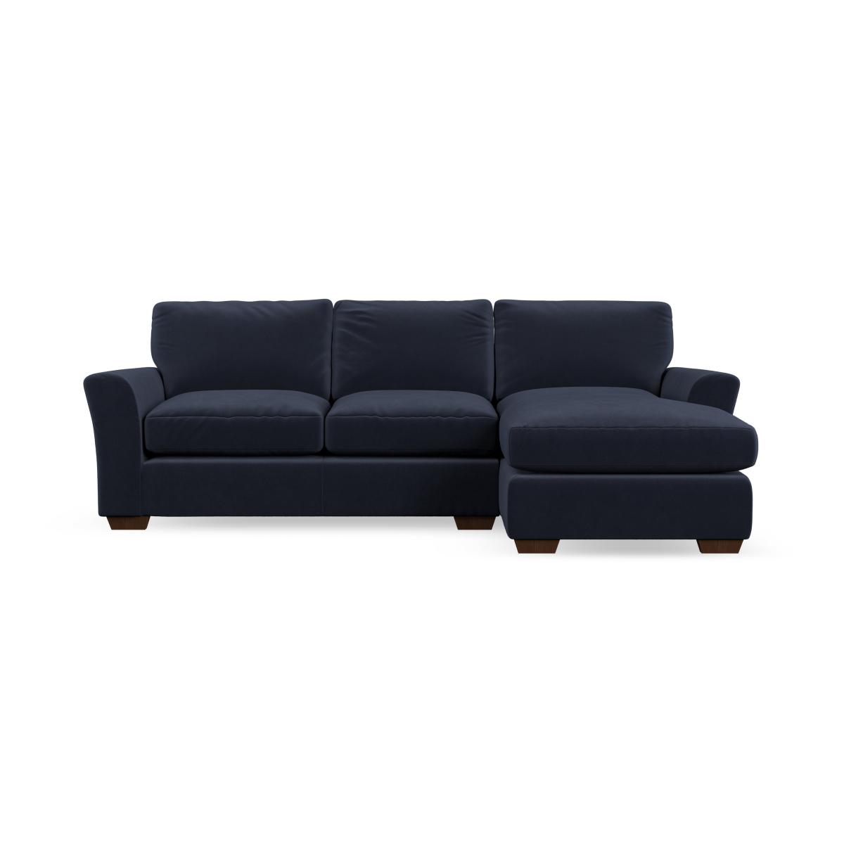 * Classical modern style * Flared arms * Stitched arm detailing * High back * Serpentine seat springs * Choose your orientation, support, fabric and leg colour This sofa's sleek, understated design features gracefully swept arms and subtle stitching details. The spacious layout is complemented by high, fibre-filled back cushions for excellent support. Tailor your comfort with a choice of foam or ‘Qualofill Blue’ fibre seating. Durable serpentine springs and sturdy hardwood legs in two finishes ensure this piece is as practical as it is stylish—perfect for relaxing or entertaining in contemporary living spaces.