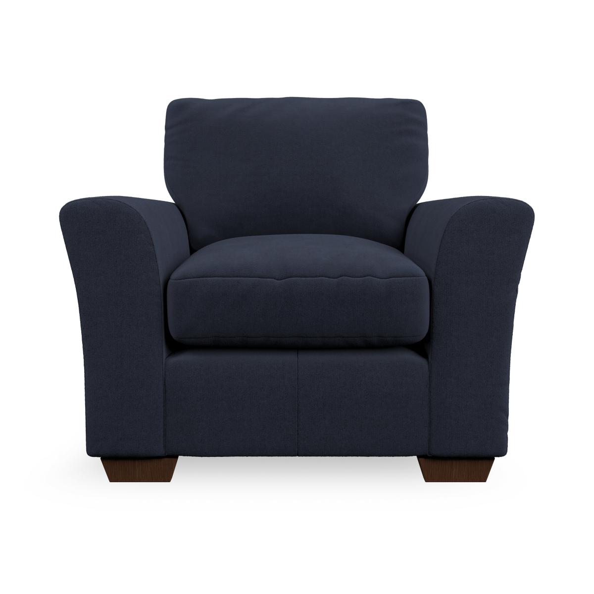 * Classical modern style * Flared arms * Stitched arm detailing * High back * Serpentine seat springs * Choose your support, fabric and leg colour This armchair's soft, swept armrests and refined stitching details give it an elegant look. The fibre-filled back cushion offers outstanding support, while the seat can be customised with either foam or ‘Qualofill Blue’ fibre filling. Supported by durable serpentine springs and stylish hardwood legs in two finishes, this armchair is both supportive and stylish, making it a perfect accent for any living space.