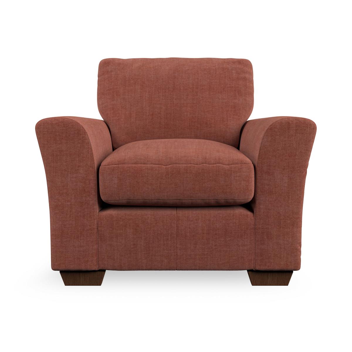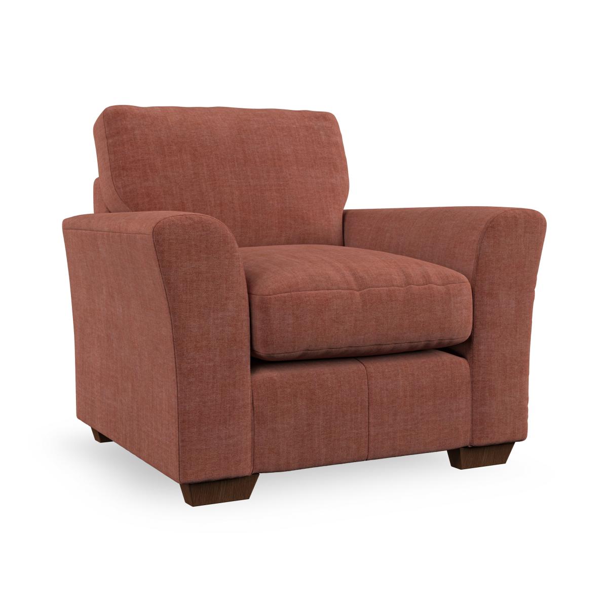 I’m a fan of the Lena chair for its clean lines, generous seat depth and warm terracotta-style fabric - it sits equally well in a Scandi-inspired living room or a more textured, boho scheme. The low, square arms make it a versatile partner to mid-century sideboards or sleek metal-framed coffee tables. For styling, anchor it on a neutral jute or wool rug and layer in a cream linen cushion and a charcoal-grey lambswool throw. Position a slim wooden side table alongside for morning coffee, and introduce a potted fiddle-leaf fig or sculptural ceramic lamp to balance the warmth of the upholstery.