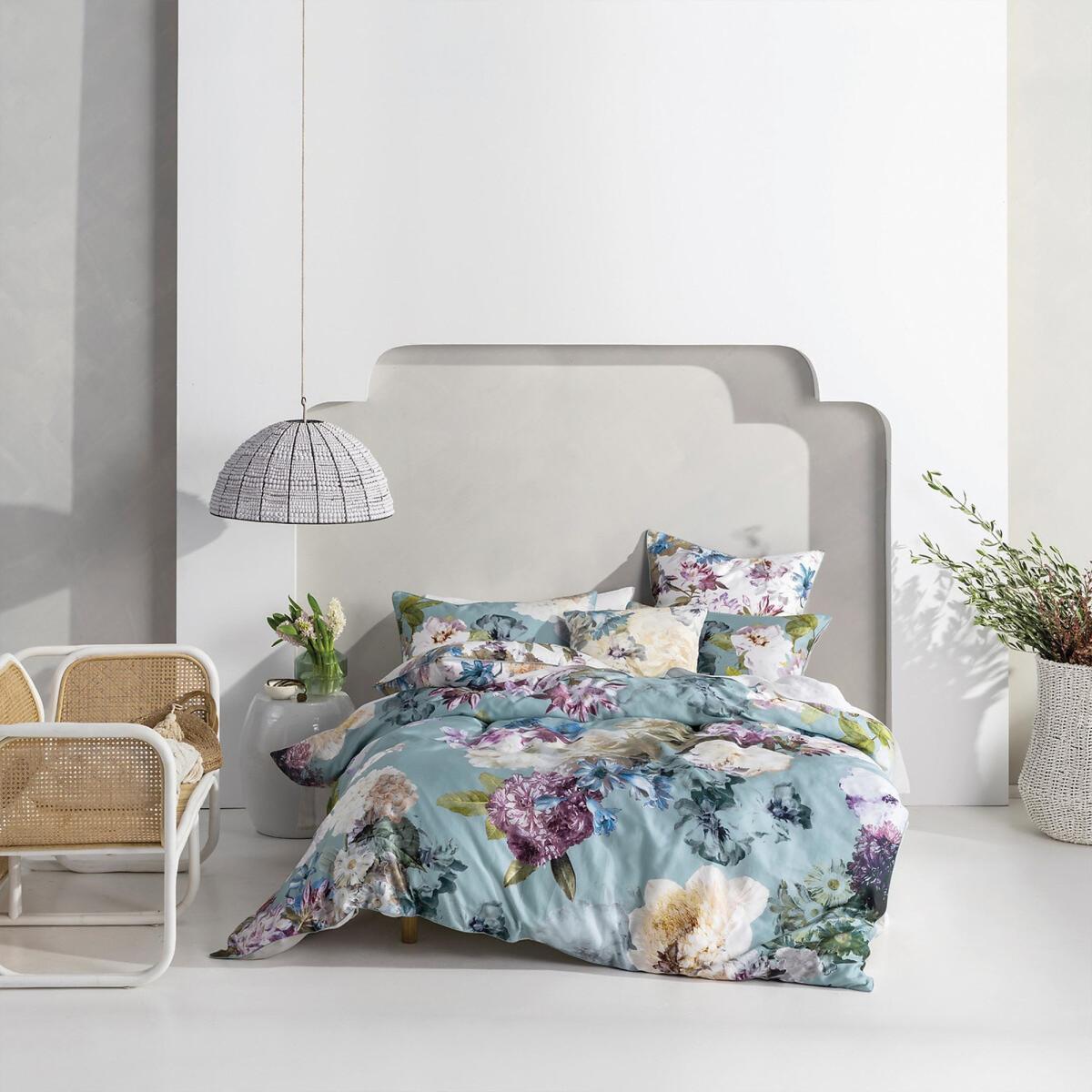 A botanical classic, Lena's sweetly sophisticated florals are printed on a luxurious cotton sateen in soft and oh-so-pretty shades of plum, blue, peach and silver. This quintessential set, which is trimmed with cord piping, will blossom further adorned with its coordinating printed velvet cushion and equally colourful European pillowcases. Composition: 100% Cotton. This product will be dispatched by one of our trusted suppliers. You’ll be contacted by their selected courier about your delivery.