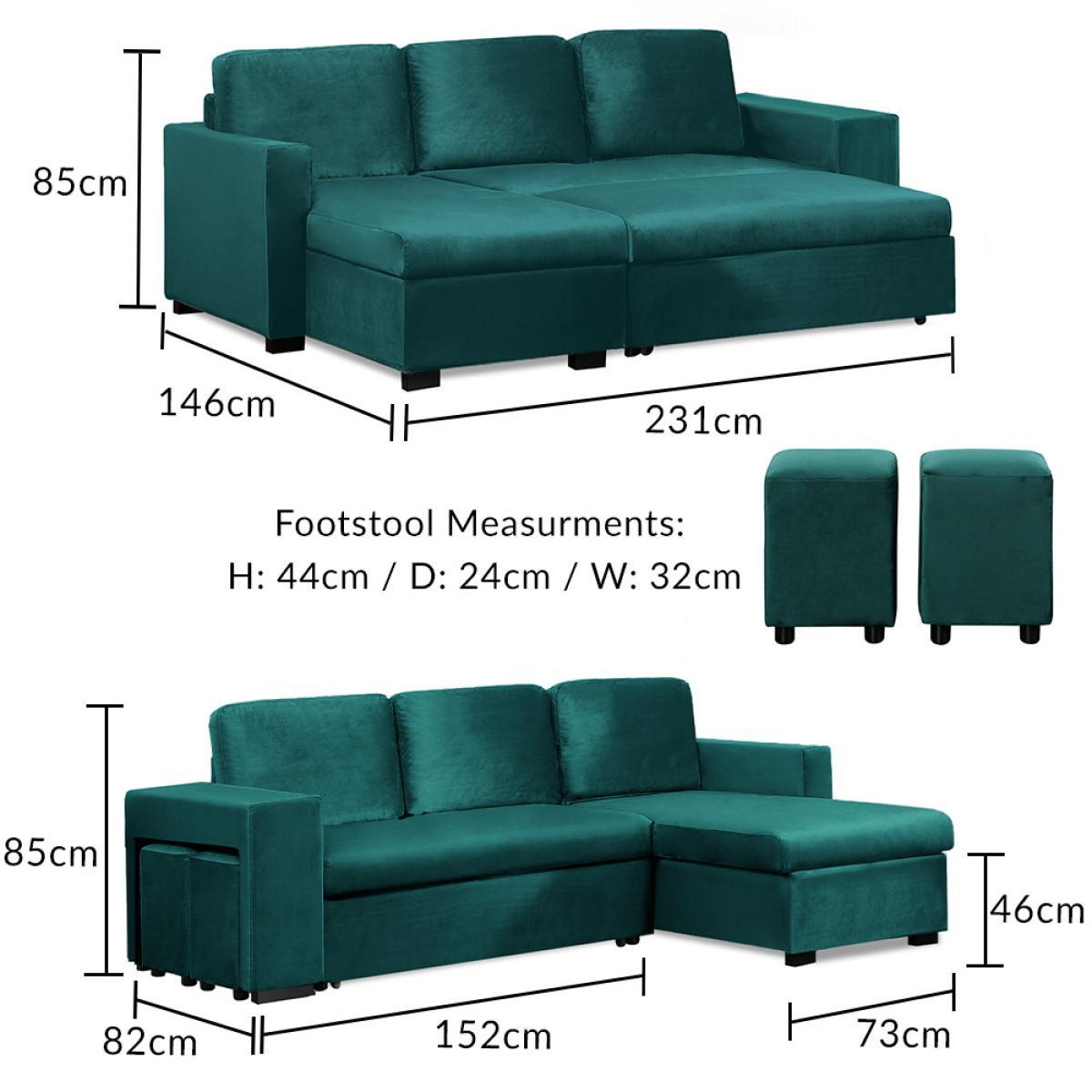 Lena Green Velvet Reversible Chaise Sofa Bed