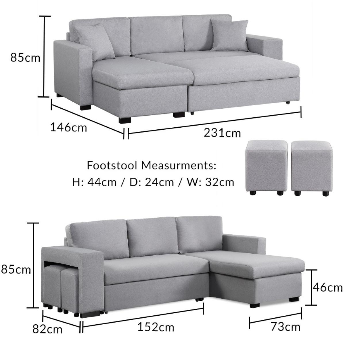 Lena Grey Linen Reversible Chaise Sofa Bed
