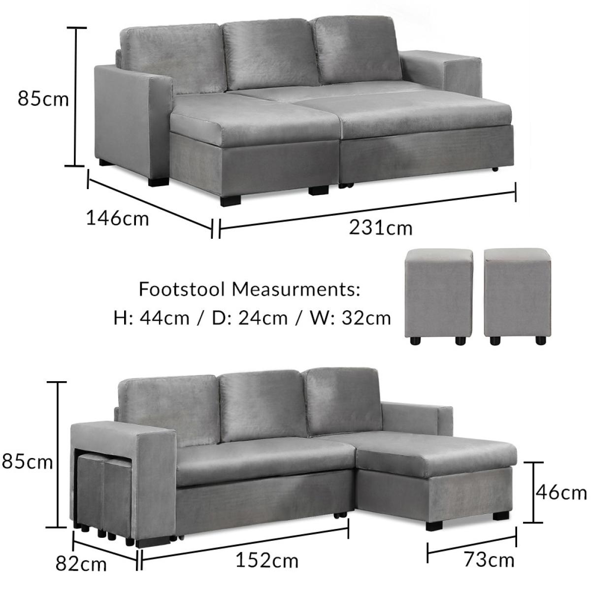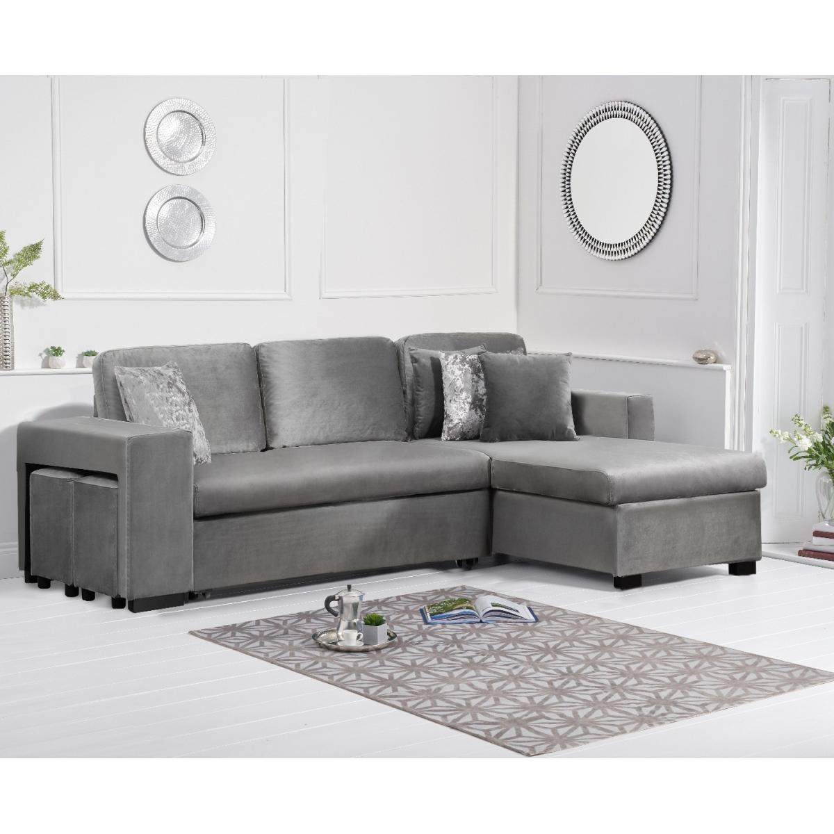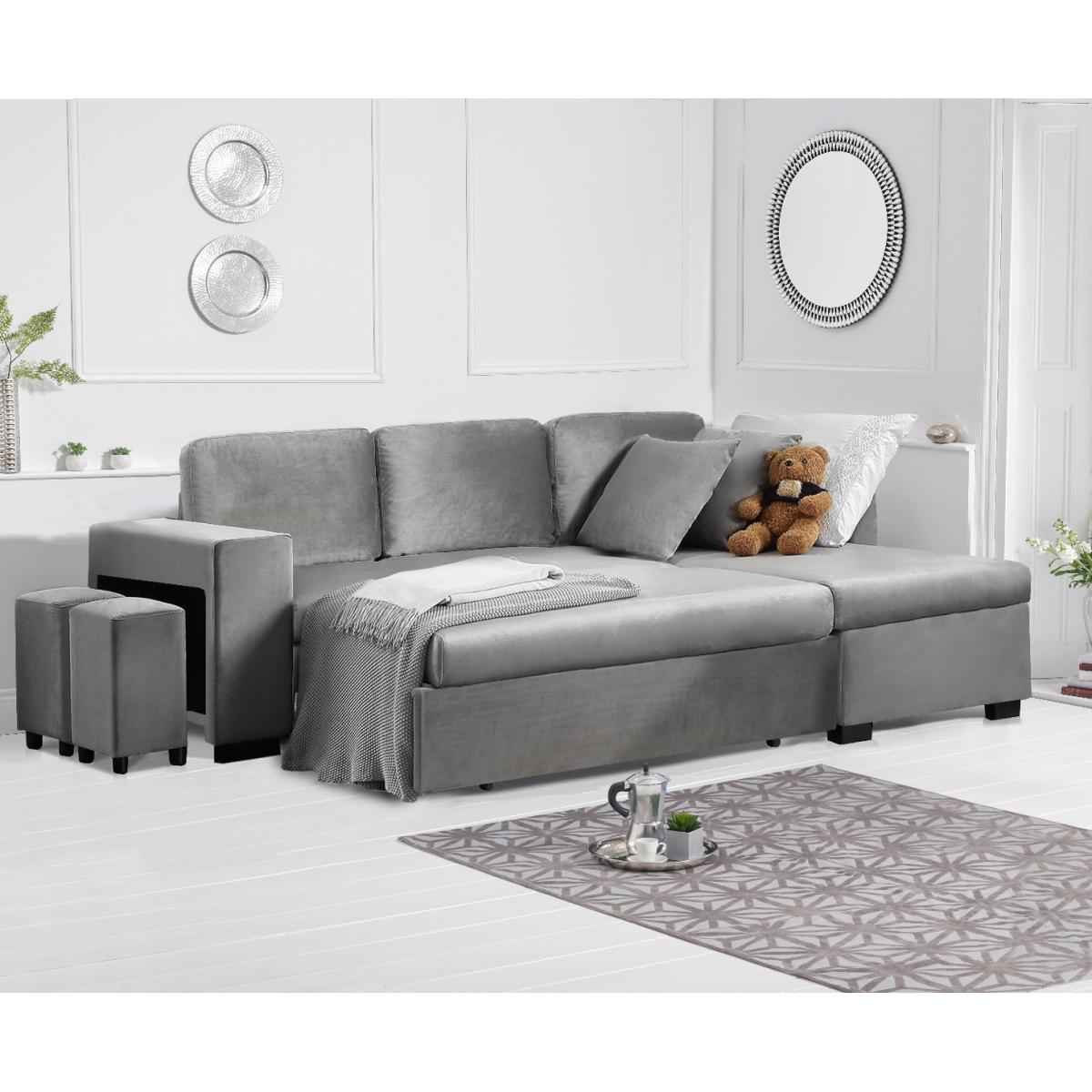 Lena Grey Velvet Reversible Chaise Sofa Bed