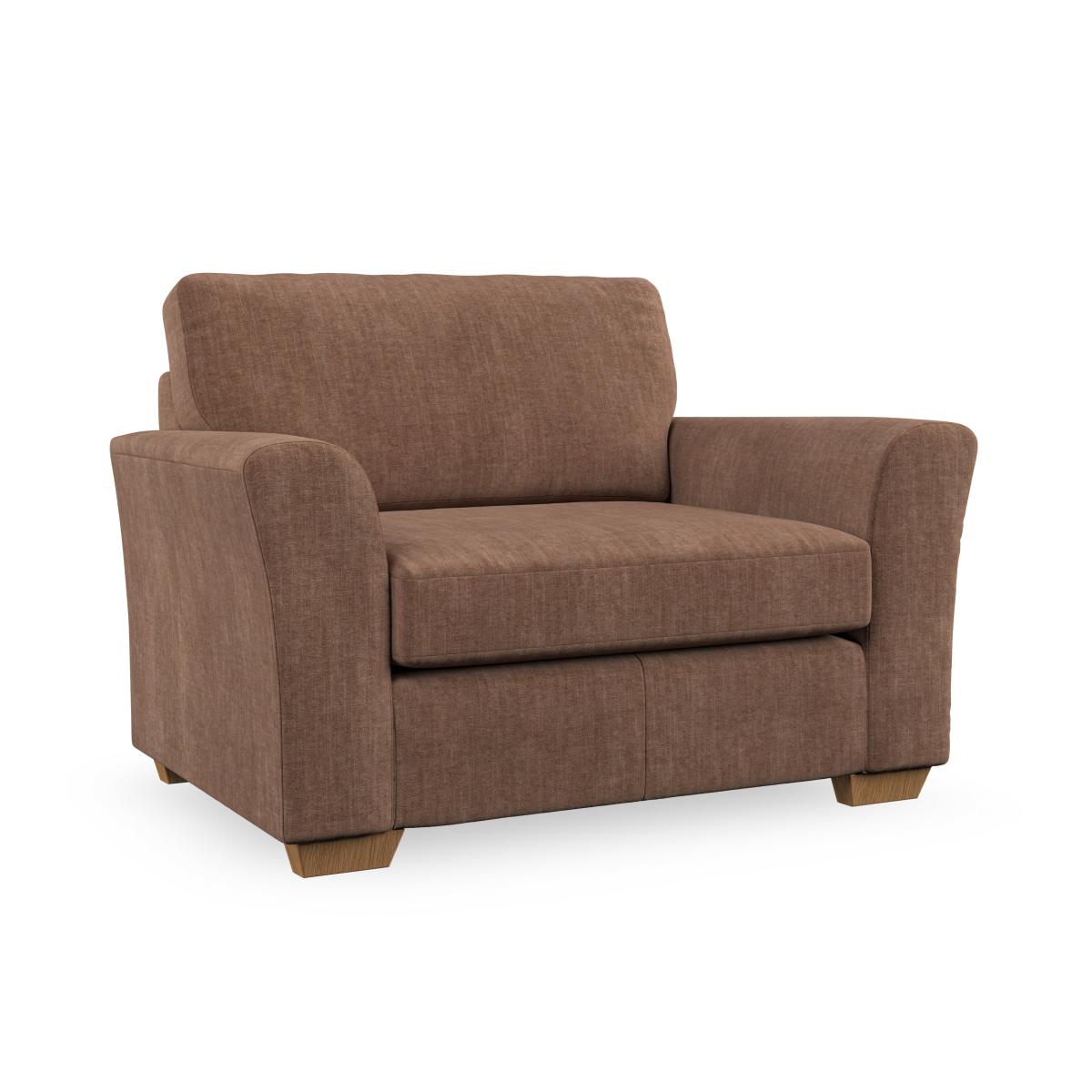 * Classical modern style * Flared arms * Stitched arm detailing * High back * Serpentine seat springs * Choose your support, fabric and leg colour This chair offers the perfect combination of comfort and charm. Its wide, inviting seat and elegant swept arm design make it an ideal spot to unwind. The generously filled back cushion provides excellent support, and you can choose between a foam or ‘Qualofill Blue’ fibre seat for personalised comfort. Supported by serpentine springs and finished with hardwood legs in two styles, this cozy chair adds a stylish and relaxing touch to any room.