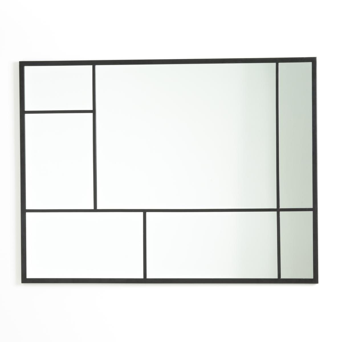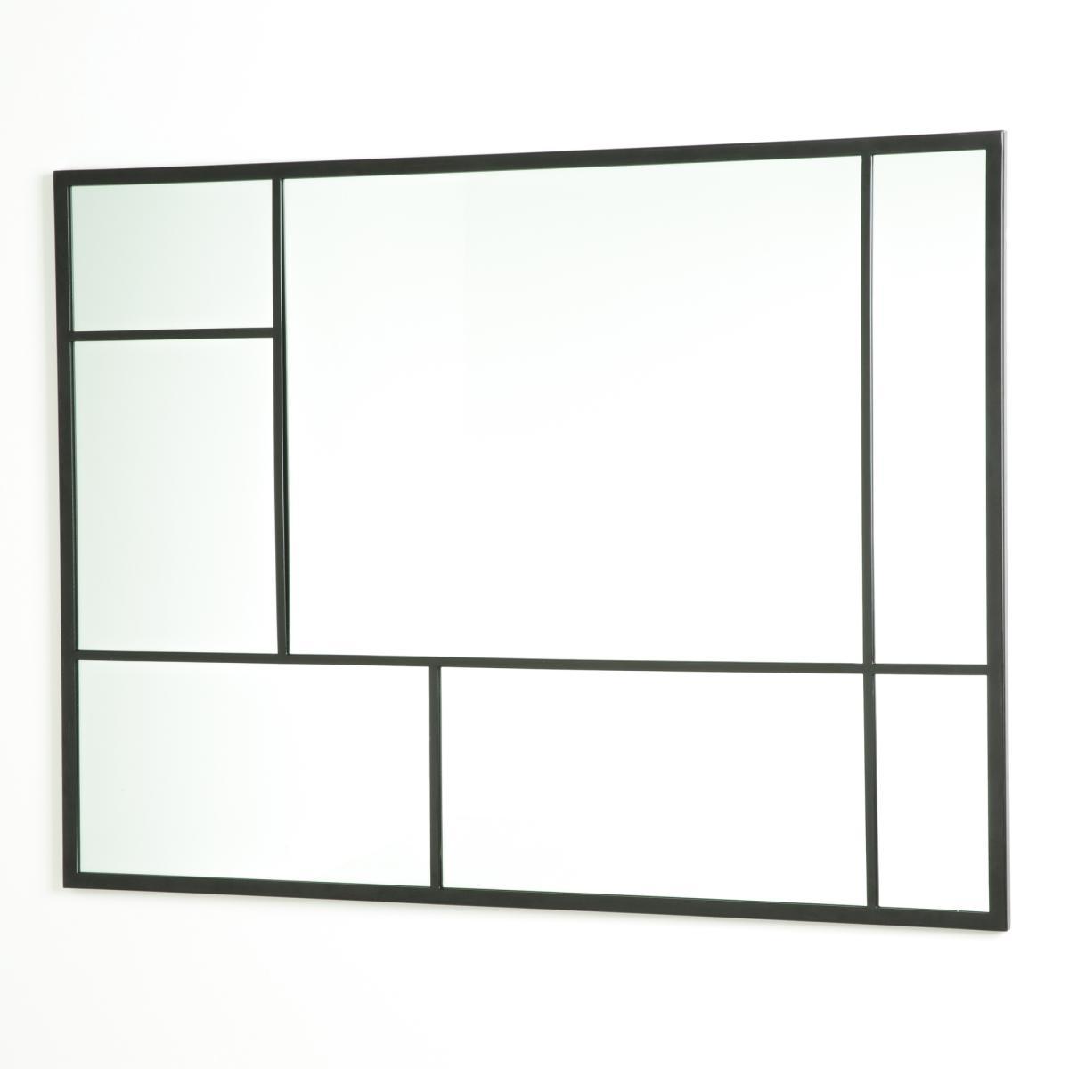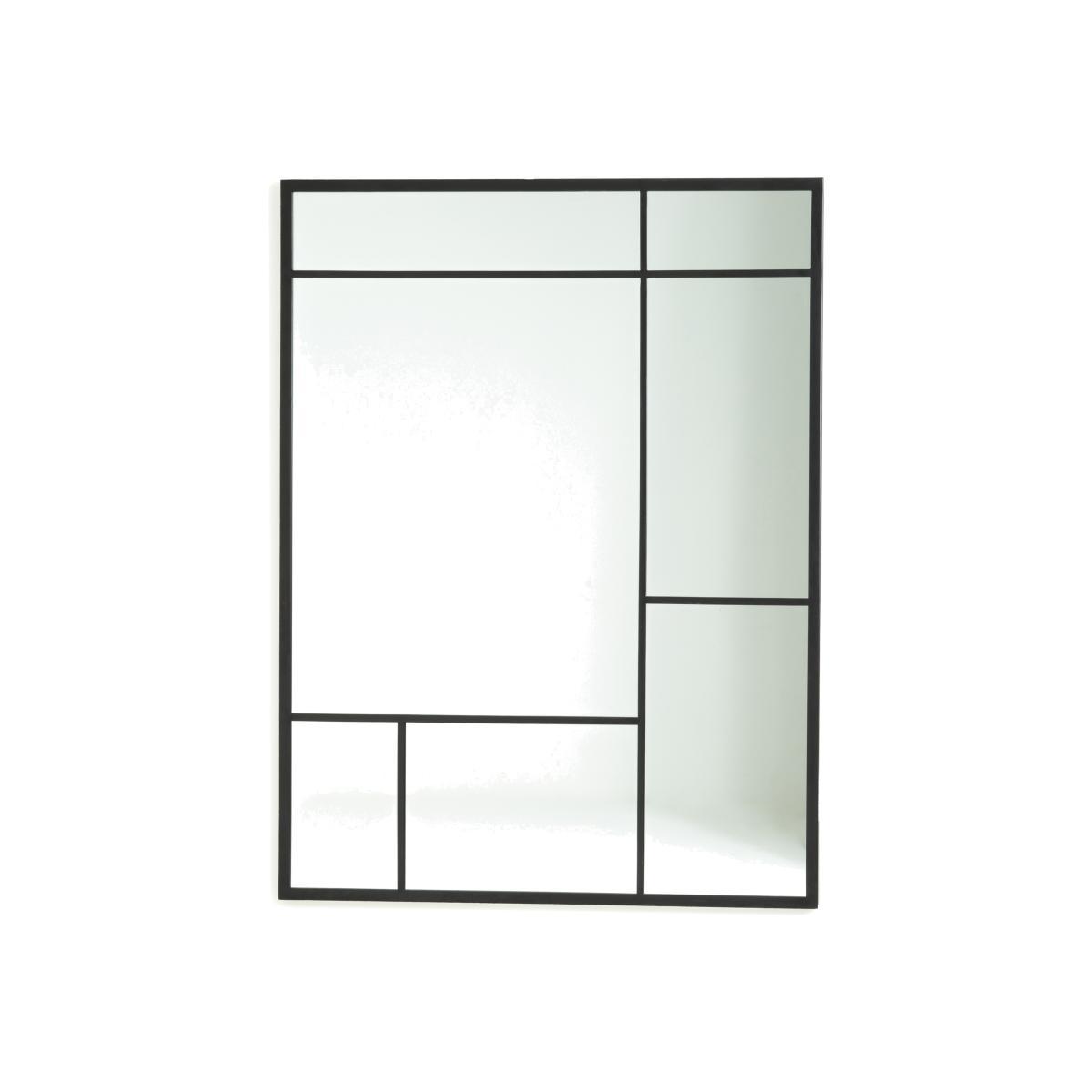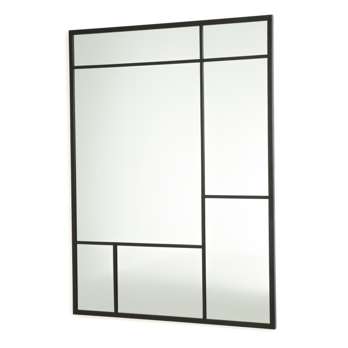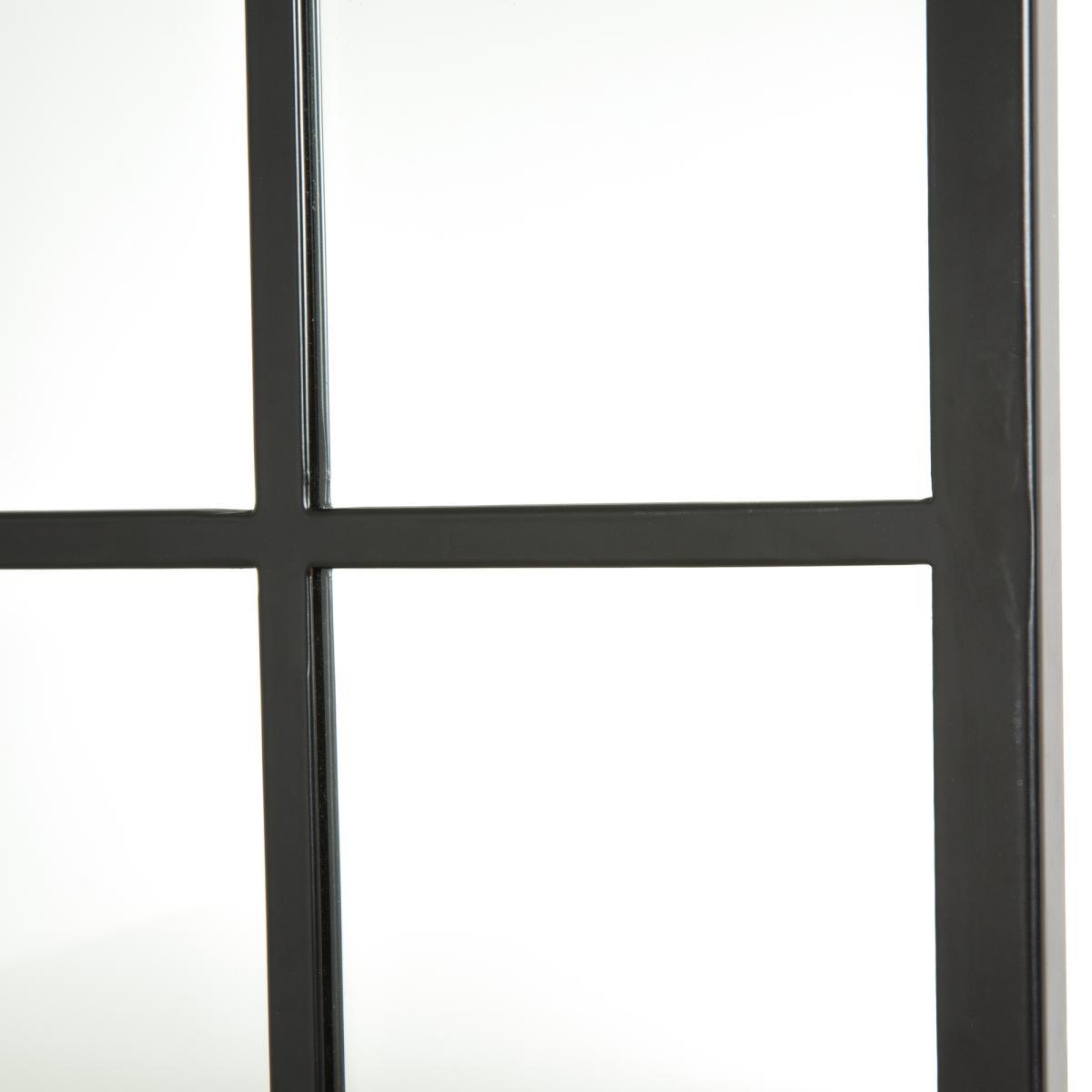 The industrial style of this mirror is accentuated with its black metal frames.