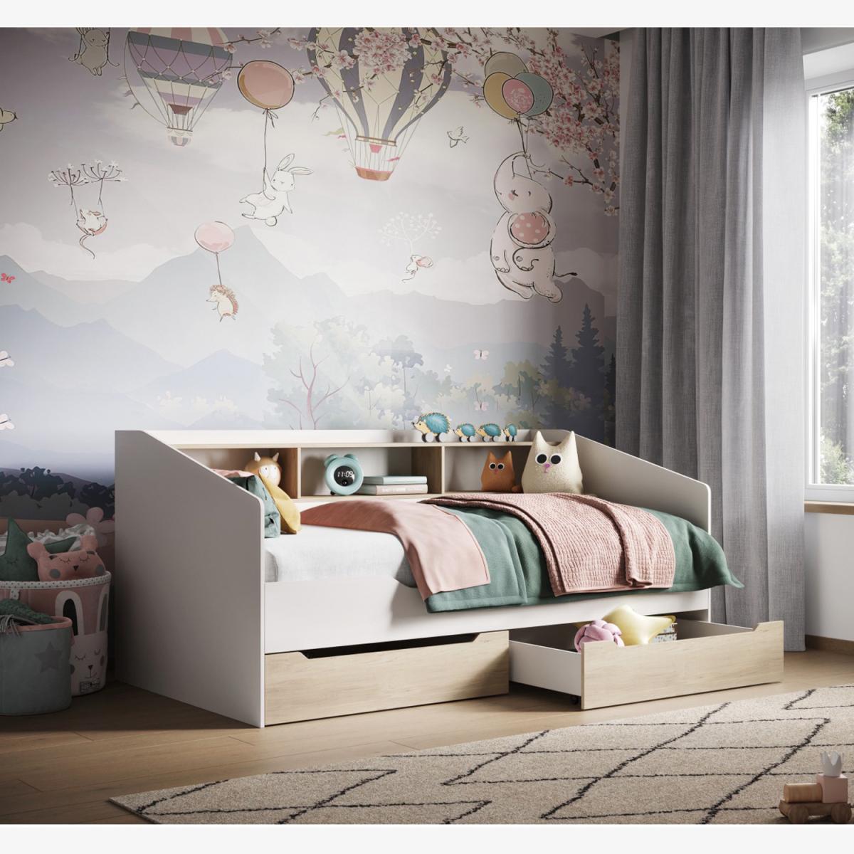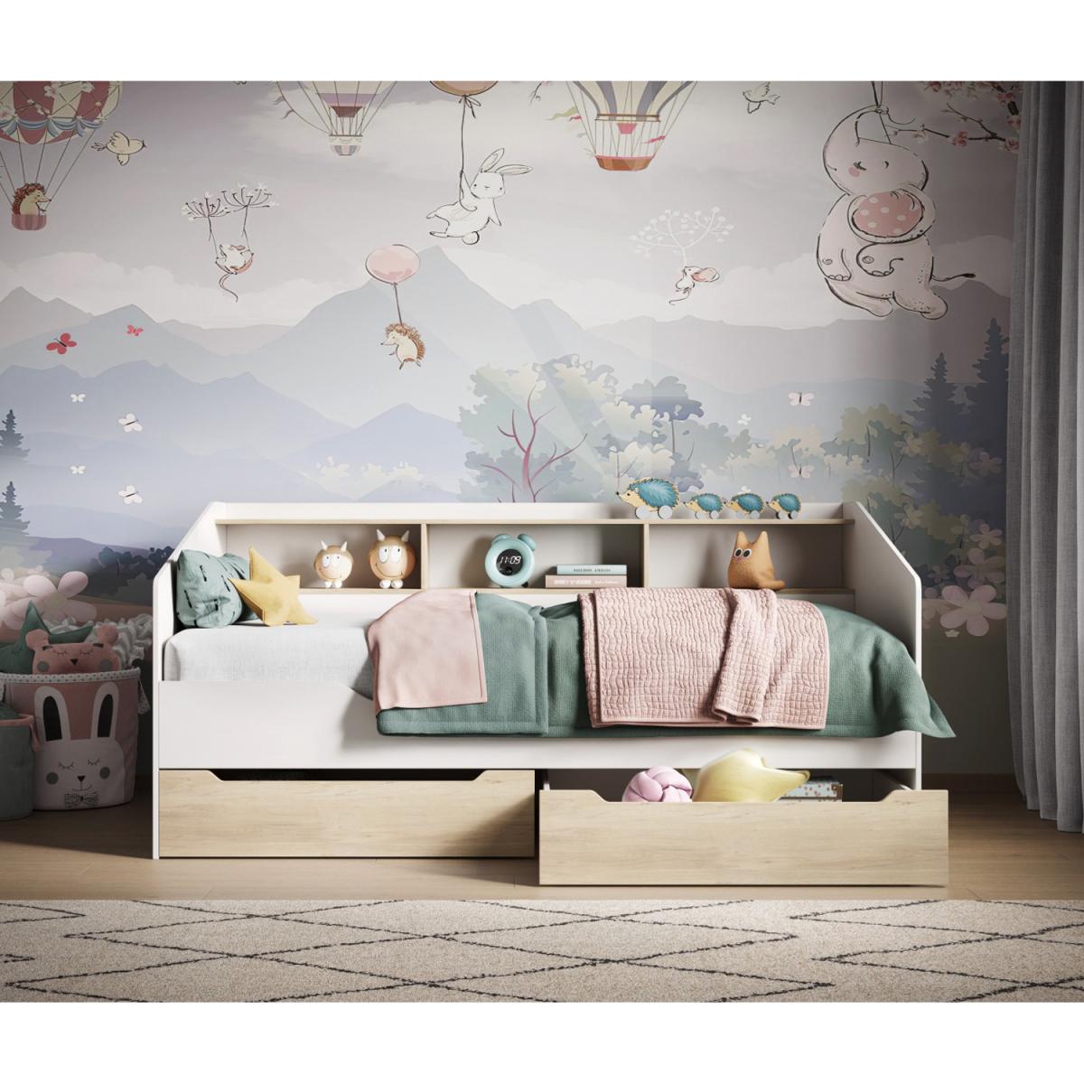 The Flair Leni Day Bed is a perfect blend of style and functionality. Available in three stunning colours - White, White and Grey, and White and Oak - this day bed will effortlessly enhance any space. Crafted from high-quality wood, it exudes durability and timeless elegance. The Leni Day Bed features convenient underbed storage in the form of dual pullout drawers on wheels and a shelf on the top, offering ample space for organizing your essentials. With its Single mattress size compatibility, it's the ideal choice for a cosy and versatile lounging experience. Upgrade your living area with the Flair Leni Day Bed and indulge in comfort and practicality like never before.