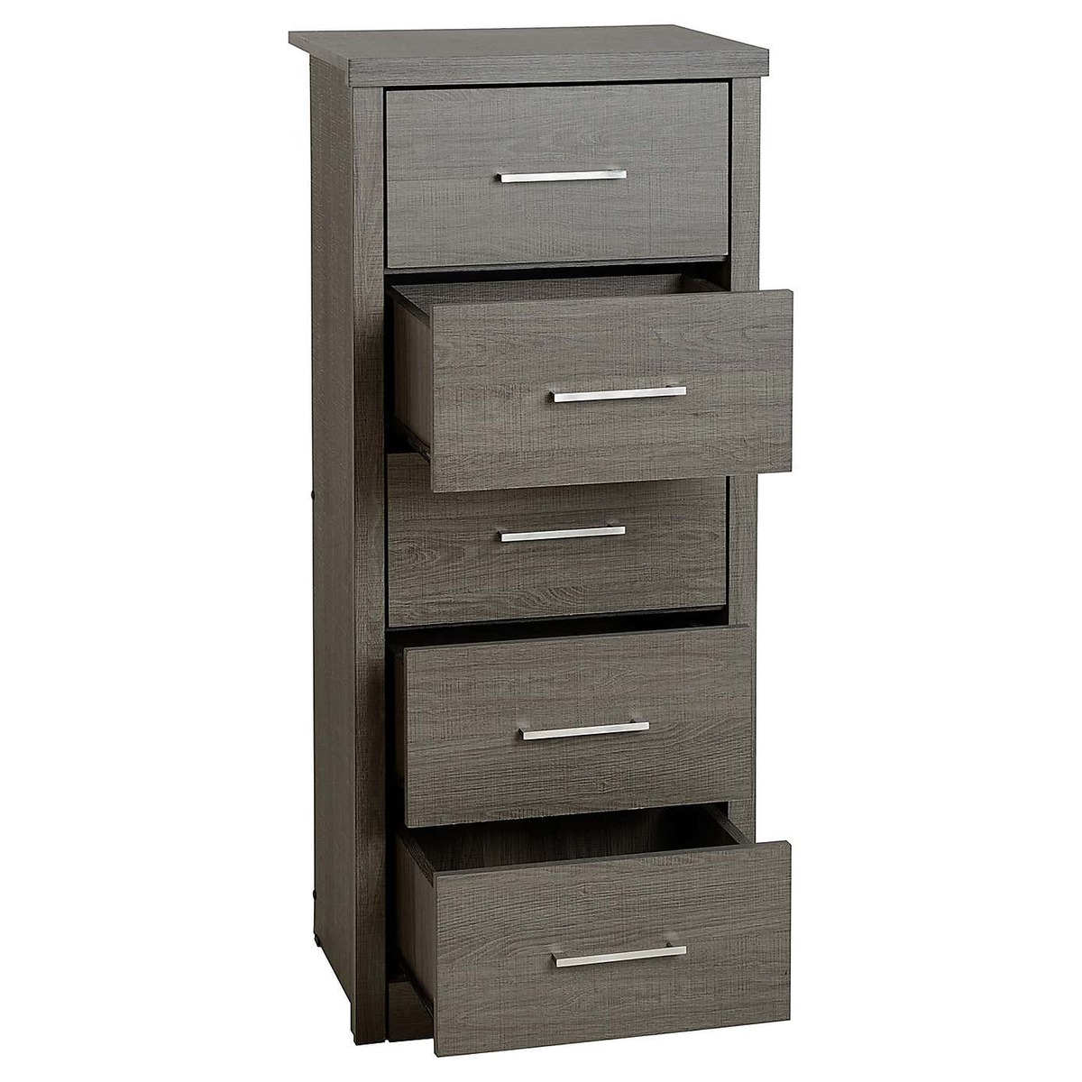 Lennon Narrow Black 5 Chest of Drawer Grey
