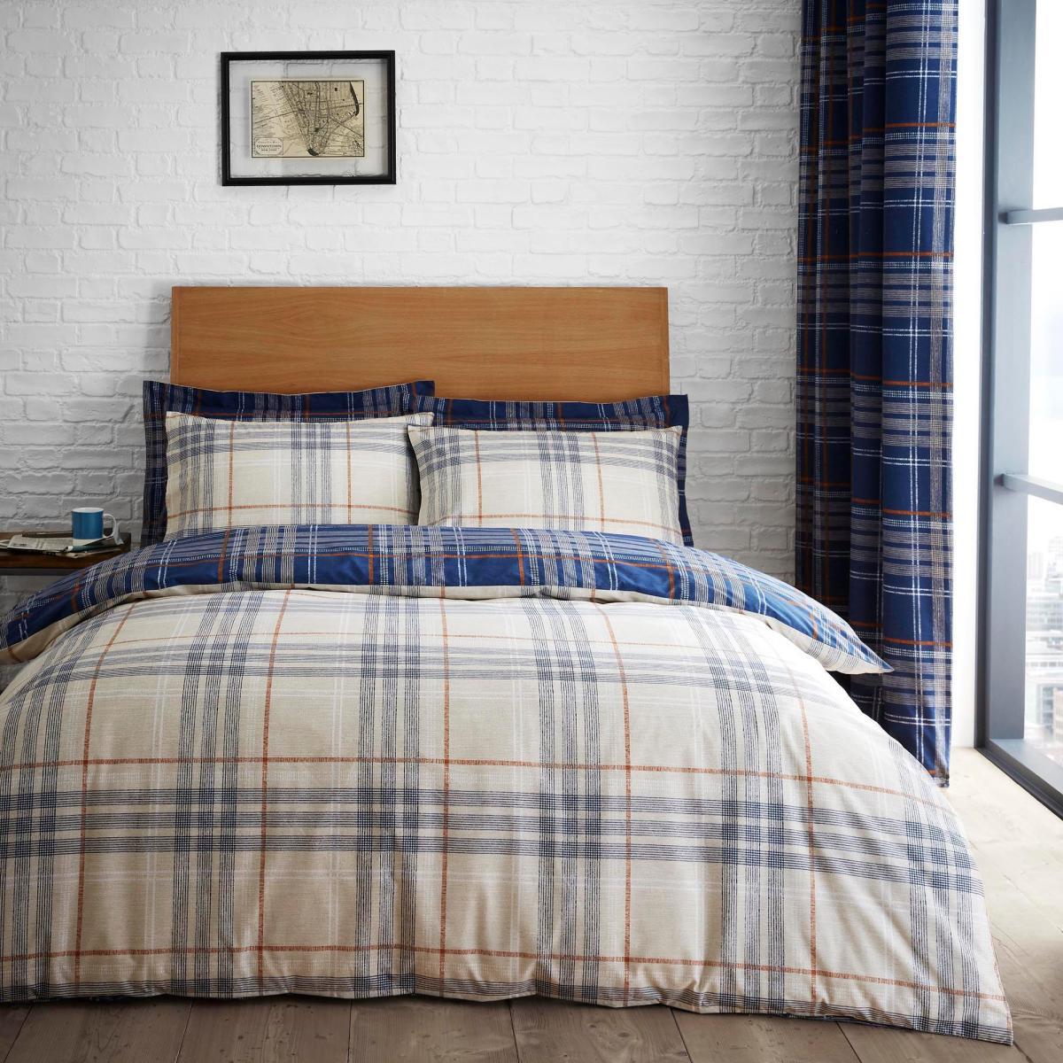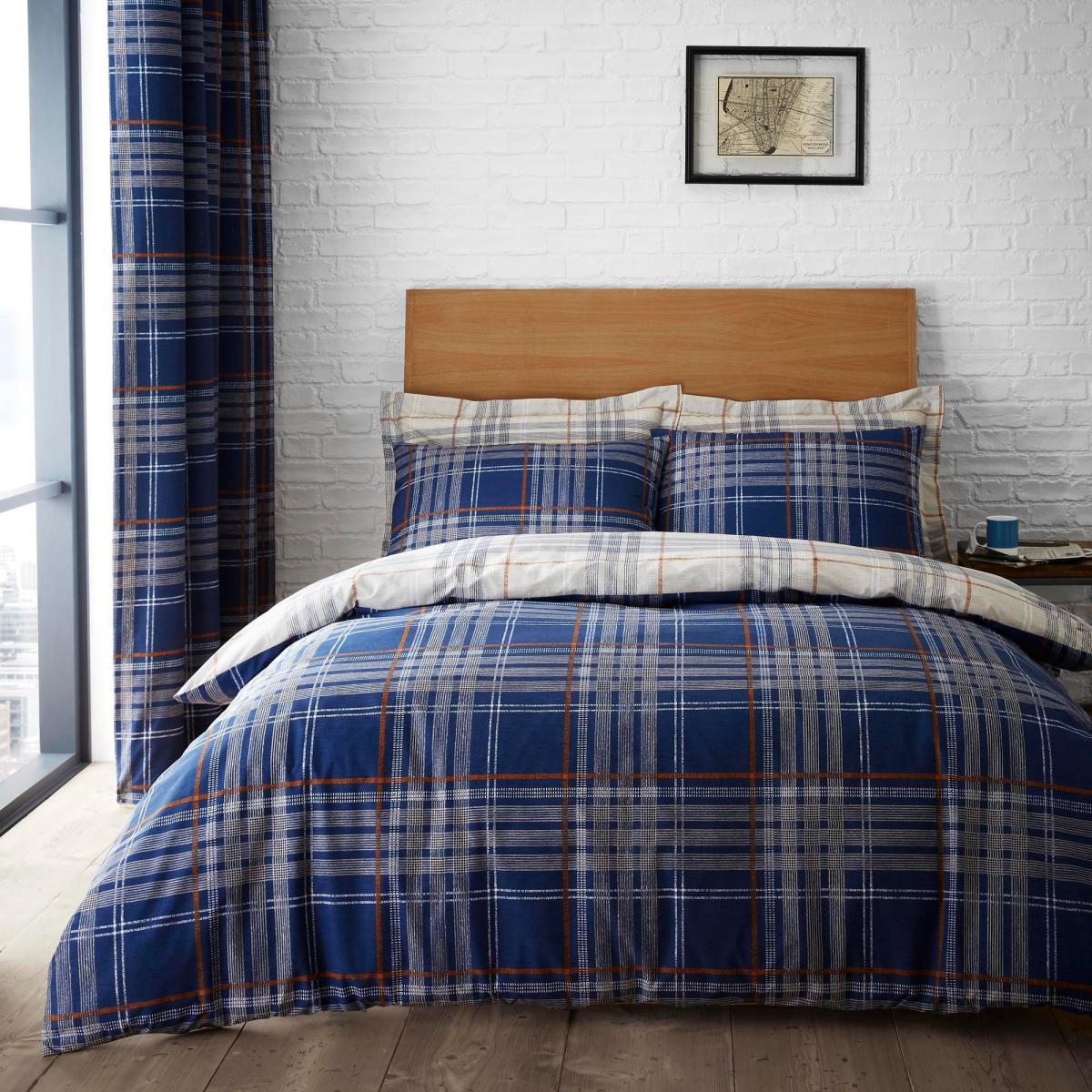 Lennox Check Navy Duvet Cover and Pillowcase Set Navy