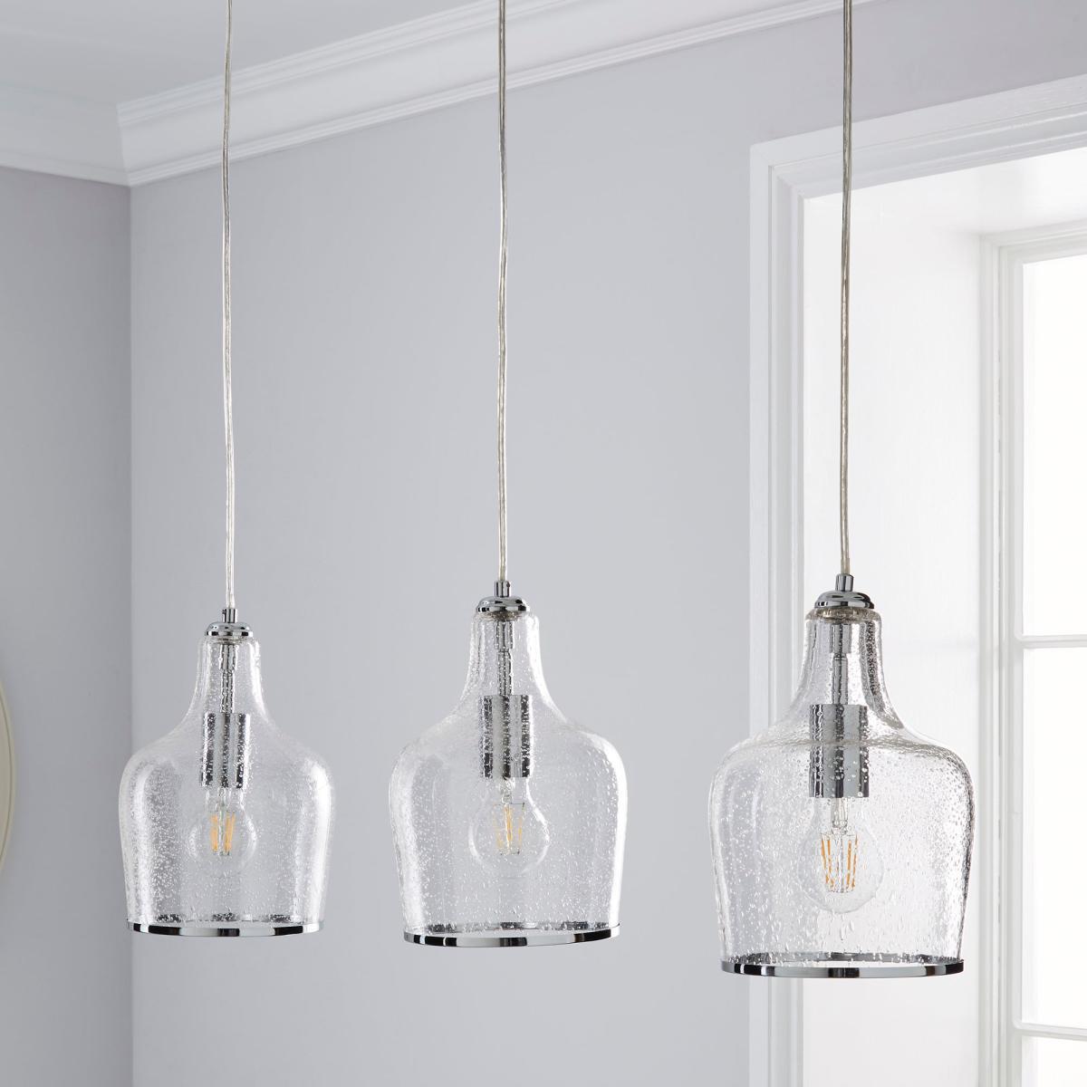 The Lenny Pendant 3 light fitting has been crafted with bubbled glass, elegant chrome trim and a matching chrome fitting for the vintage yet contemporary appearance. This light can also be adjusted at the flex. A perfect piece for adding a classic look to your home with a modern twist. This piece is dimmable compatible, making it both an attractive and practical product.