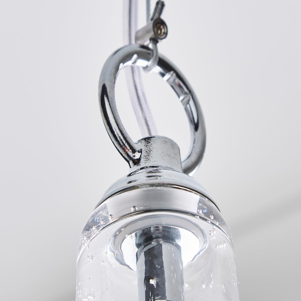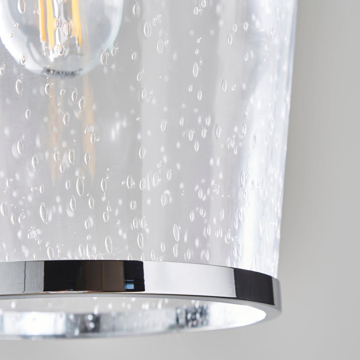 * Vintage-Contemporary Style* Bubbled Glass Design* Compatible with Dimmable Bulb & Switch The Lenny Pendant Ceiling Light has been crafted with bubbled glass and elegant chrome trim for the vintage yet contemporary appearance. A perfect piece for adding a classic look to your home with a modern twist. This piece is dimmable compatible, making it both an attractive and practical product.