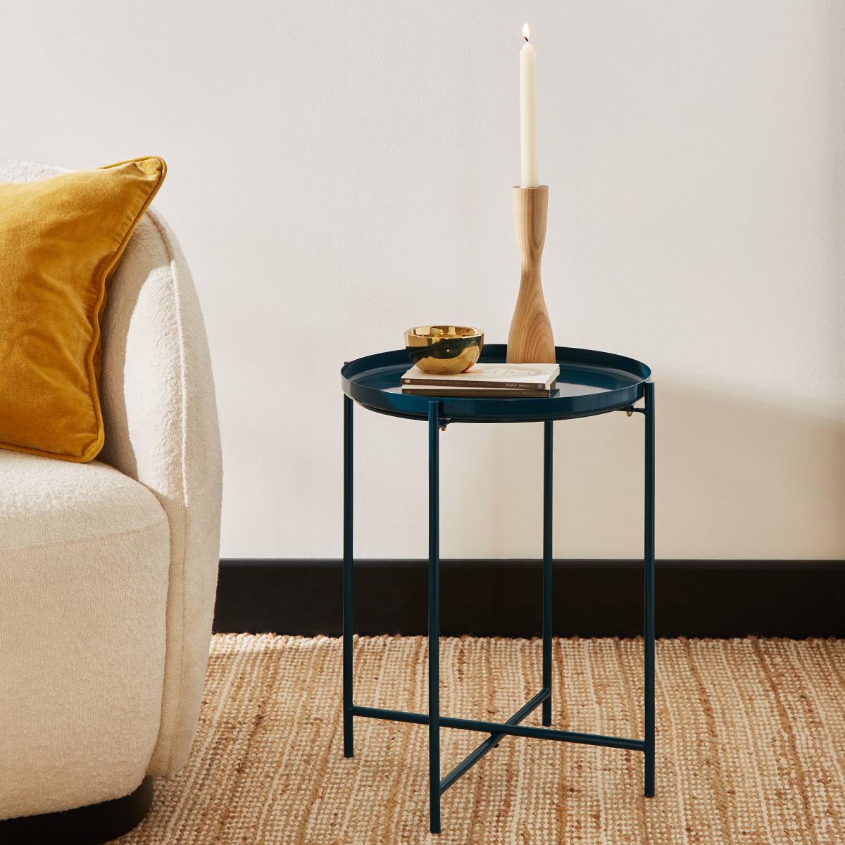 I love this peacock side table for its sleek, modern silhouette combined with a pop of colour that can elevate both indoor and outdoor spaces. It works particularly well in contemporary or eclectic interiors, where it can add a touch of vibrancy without overpowering the overall aesthetic. As a stylist, I’d suggest pairing it with neutral upholstery to let the colour stand out, or use it alongside other rich, jewel-toned accessories for a layered look. Practical tips include placing it beside a sofa or armchair for easy access to drinks and décor, and its sturdy build makes it equally suitable for outdoor use, perfect for patios or balcony setups. The simplicity of its design means it can be styled with an array of objects, from statement vases to candles, to personalise your space effortlessly.