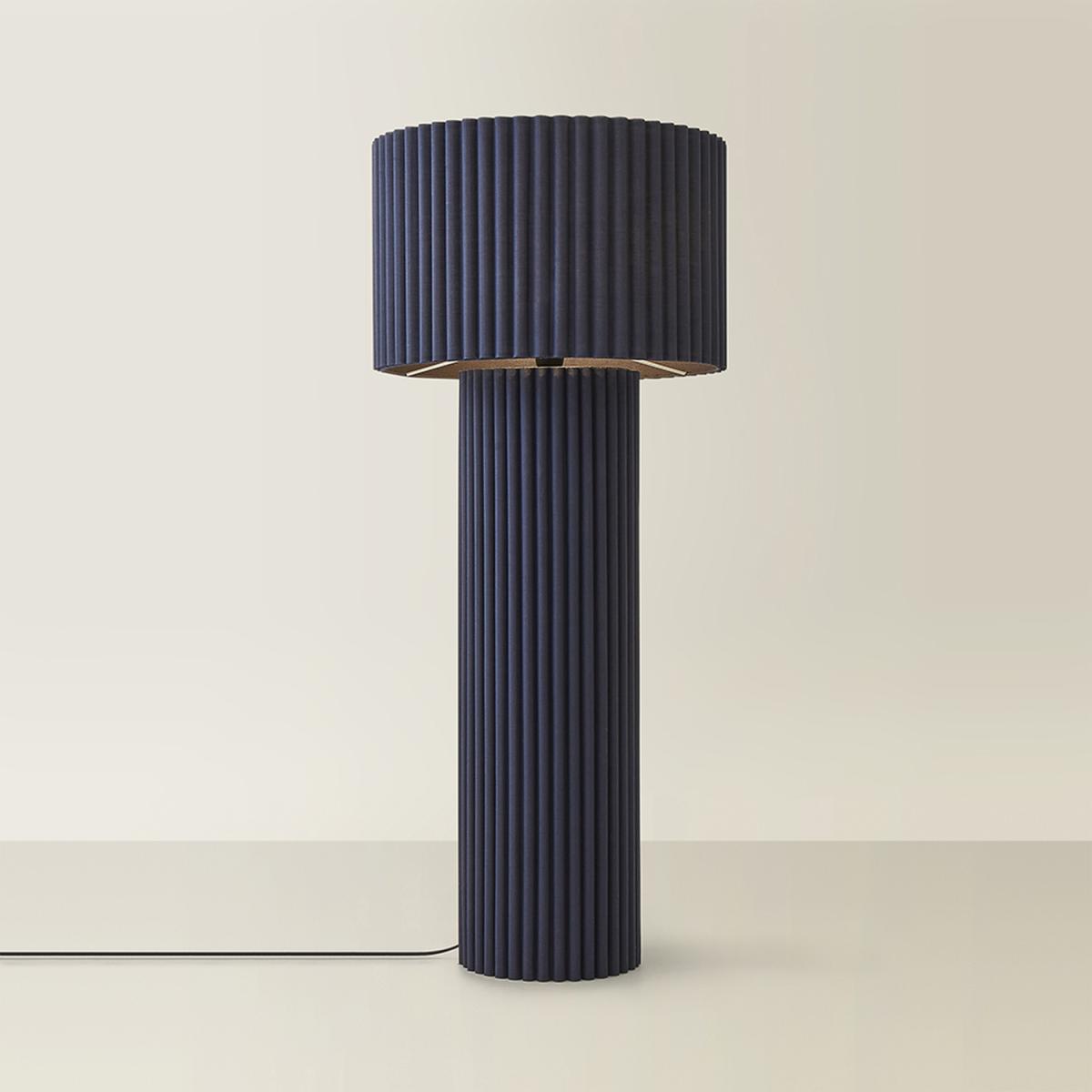 Lenny Ribbed Fabric Midi Floor Lamp with Drum Lampshade - Navy