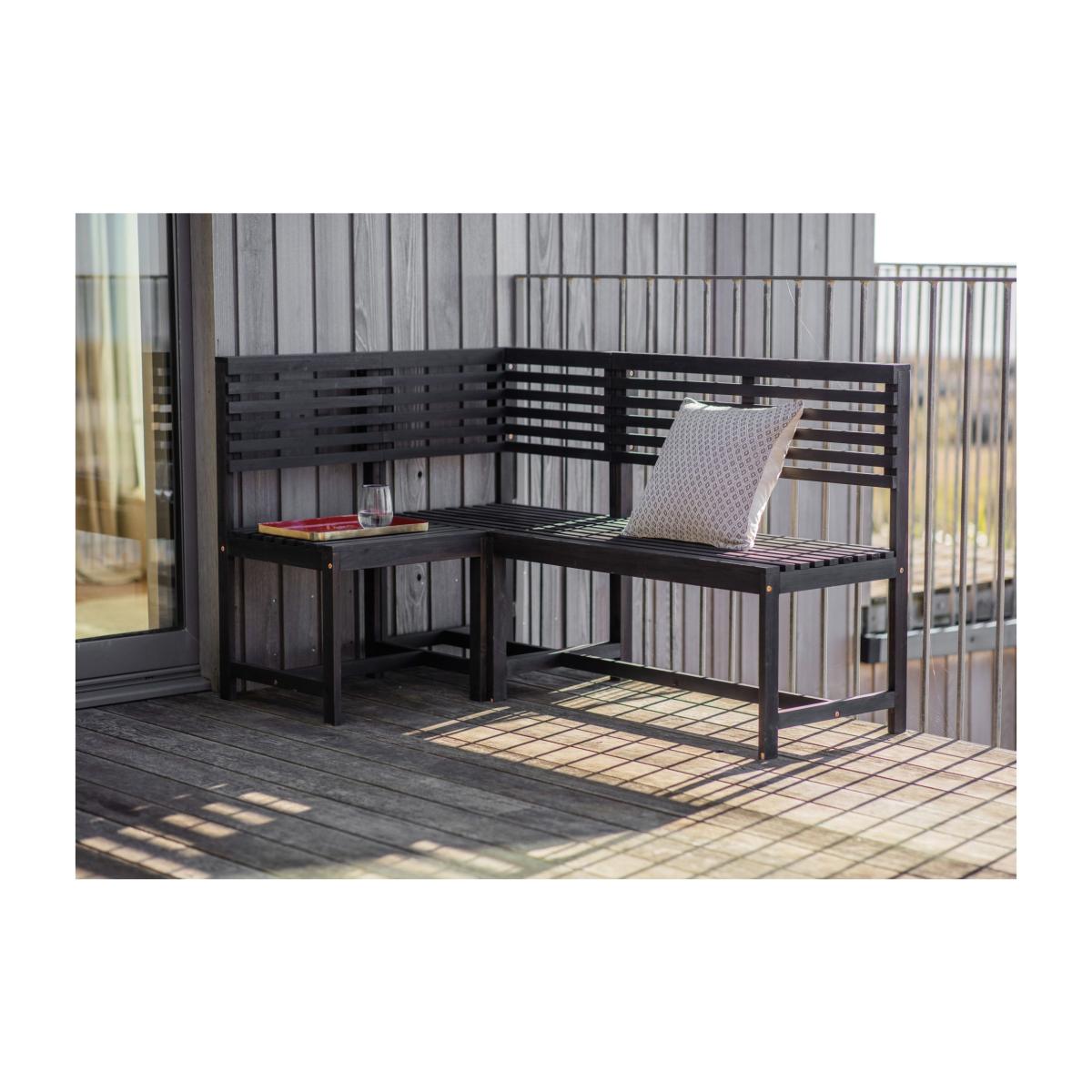 This Balcony Bench Set is designed for use on balconies, but looks equally good in the corner of a patio or garden, and goes with our matching Balcony Table. It creates a corner bench. It is crafted from acacia wood with a charcoal painted finish. The set is also available in a natural-look finish.